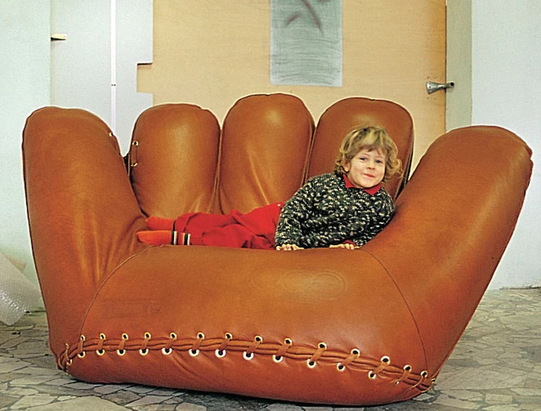 Mit dem Entwurf des Sessels Joe in Form eines Baseballhandschuhs schuf das Designtrio De Pas, D’Urbino und Lomazzi für die italienische Firma Poltronova eine Ikone des italienischen Radical Designs. Denn bei der Formgebung setzten die drei Designer Maßstäbe für die Verschmelzung von Alltagsgegenständen und Pop Art: Der Entwurf aus dem Jahr 1971 ist ein riesiger Baseballhandschuh-Ledersessel und gleichzeitig eine Hommage an den amerikanischen Sportler Baseballpieler Joe DiMaggio der New York Yankees (der übrigens kurzzeitig mit Marylin Monroe verheiratet war).