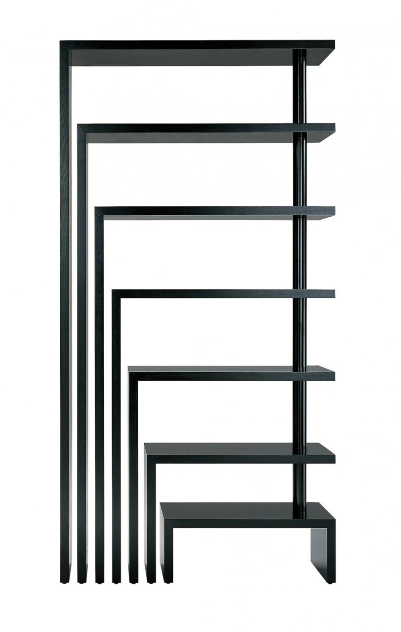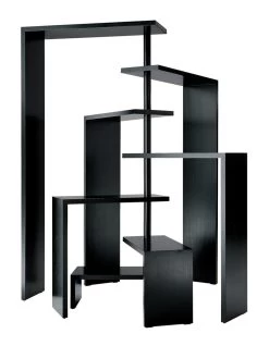 Das freistehende Regal Joy von Zanotta ist ein späterer Entwurf von Achille Castiglioni aus dem Jahr 1989. Dabei können die einzelnen Elemente um die Verbindungsstange beliebig angeordnet werden. Das Drehregal wird als Standard in schwarz oder weiß angeboten, auf Anfrage ist es bei Zanotta zusätzlich in den Farben bordeaux oder blaugrün erhältlich. Das Joy Regal ist in zwei Größen erhältlich: