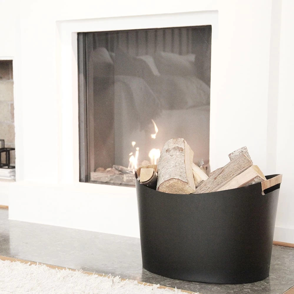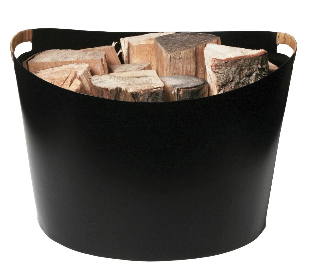 Hinweis: der Kaminholzbehälter wird aus schwarz emailliertem Eisen gefertigt. Kleine Unebenheiten und Ausbeulungen des Metalls ergeben sich durch die Handarbeit des Metalls und sind kein Reklamationsgrund.