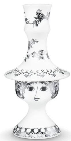Der 17 cm hohe silberfarbige Kerzenständer Rosalinde zählt zu einer ganzen Serie an Kerzenständern, die Bjørn Wiinblad entwarf. Markanto bietet aus der umfangreichen Kollektion eine Auswahl an. Typisch für Wiinblads Arbeiten sind dabei die fröhlichen und lebensfrohen Zeichnungen – verbunden mit den abstrakten, sympathischen Gesichtern.