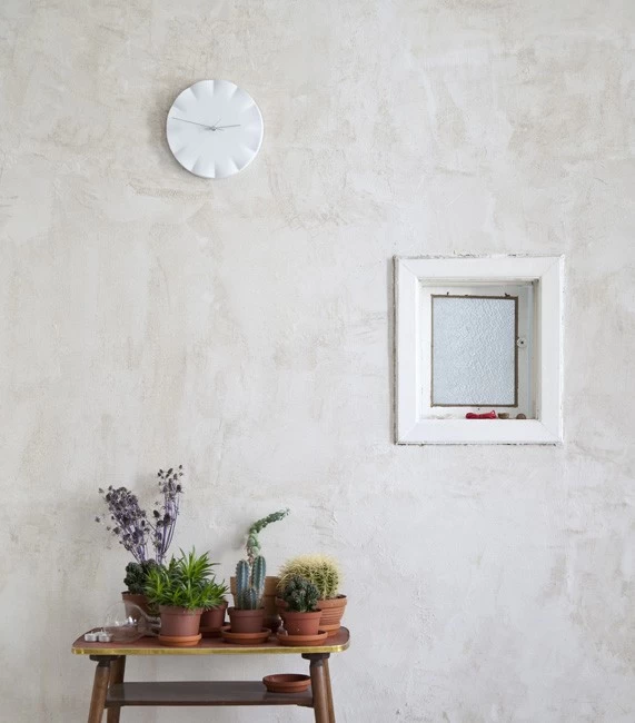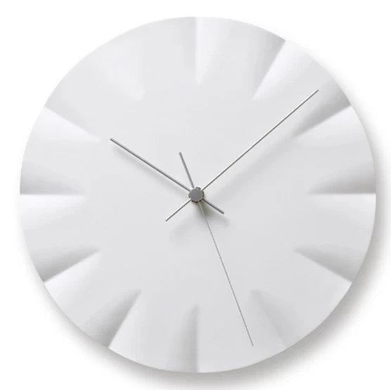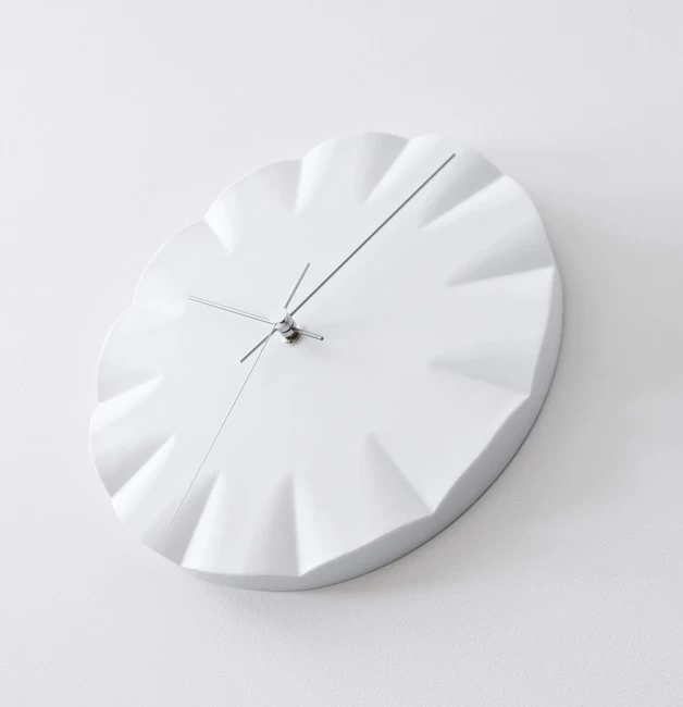 Das Zifferblatt wird bei der Kifuku Wanduhr durch das Material bestimmt – weißes Porzellan. Die reduzierte Wanduhr wirkt fast wie eine Skulptur, der Entwuf stammt von der japanischen Industriedesignerin Noriko Hashida für Lemnos.