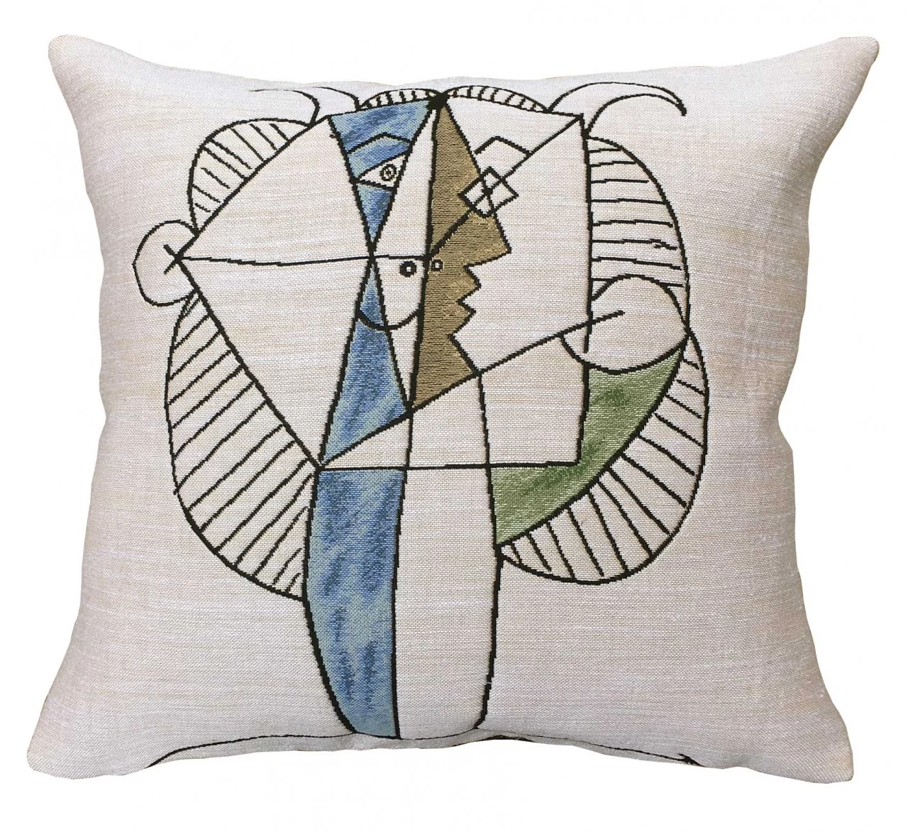 Das Picasso Kissen Tête de faune Chevelu basiert auf einer Zeichnung des Künstlers aus dem Jahr 1947. Hergestellt werden die Picasso Kissen von der 1878 gegründeten Weberei Jules Pansu in Paris mit der exklusiven Erlaubnis der Succession Picasso. Alle Kissen sind in der Jaquard-Webtechnik gewebt und verfügen über einen Reißverschluss. Weitere Künstlermotive und Kissen von Jules Pansu gerne auf Anfrage.