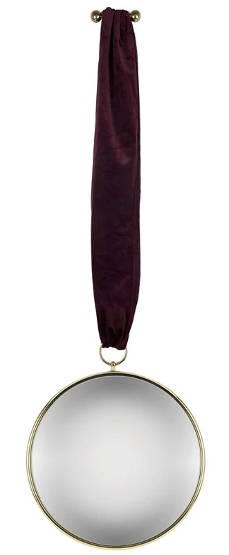 Piero Fornasetti entwarf im Laufe der Zeit zahlreiche Spiegel – ein tyisches Gestaltungsmerkmal war dabei die konvexe Form des Glases, welches die Umgebung optisch vergrößert und verzerrt. Auch der hier gezeigte Spiegel verfügt über diesen Effekt. Erhältlich ist der Wandspiegel aus Messing mit dem roten Samtband in zwei Größen, die zusätzliche Wandbefestigung aus Messing ist bei der Lieferung mit dabei.