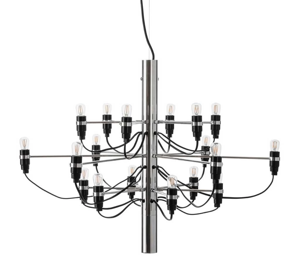 2020 legte Flos den Kronleuchter 2097 von Gino Sarfatti in einer Variante mit 18 Leuchtstellen auf, bei der Lieferung sind die 18 LED-Glühbirnen im Lieferumfang enthalten, Flos bietet die Glühbirnen wahlweise klar oder matt an.