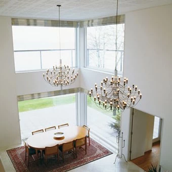Gino Sarfatti war Gründer der berühmten italienischen Leuchtenmanufaktur Arteluce, die später von Flos übernommen wurde. Bereits 1939 startete Arteluce mit Entwürfen moderner italienischer Designer (meistens von Gino Sarfatti selbst) und erwarb sich in den 1950er und 60er Jahren den Ruf als Pionier des Lichtdesigns. Erhältlich ist der Kronleuchter 2097 aktuell bei Flos in drei Größen.
