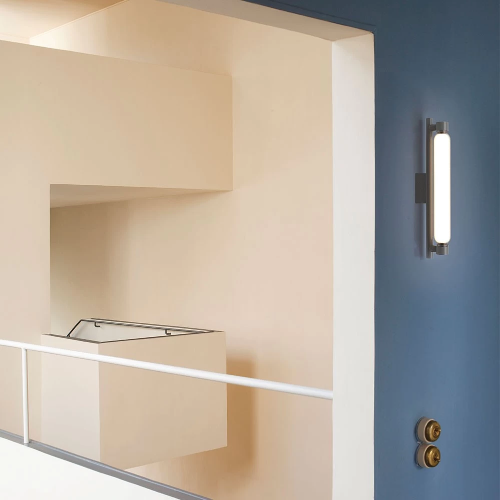 1925 entwarf Le Corbusier für die Villa La Roche und den Pavillon de L’Esprit Nouveau der großen Art Decó Ausstellung in Paris ein Beleuchtungssystem. Aus diesem System entstand die Wandapplike La Roche, die 2019 von Nemo im originalen Maßstab neu aufgelegt wurde.