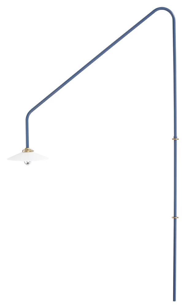 Die Wandleuchte Lamp n°4 ist eigentlich als Deckenleuchte gedacht. Sie wird zwar an der Wand montiert, wirft aber das Licht von oben steil nach unten. Die Leuchte gehört zu der viel beachteten Serie von Muller Van Severen. Insgesamt umfasst die Serie fünf Leuchten, die alle in unterschiedlichen Farbvarianten erhältlich sind. Jede Leuchte wird dabei mit einer messingfarbigen Wandhalterung geliefert, das Kabel ist weiß. Als zwei Farben stehen bei der Wandleuchte Hanging Lamp n°4 blau und schwarz zur Auswahl. Zusätzlich ist die Wandleuchte noch komplett in Messing erhältlich.
