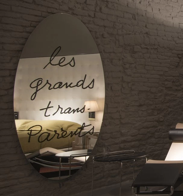 Der Spiegel Les grands trans-Parents aus der Simon Collezione von Cassina basiert auf einem Kunstwerk von May Ray aus dem Jahr 1938. Dabei spielte May Ray mit Worten auf einem großen Spiegel. Man Ray (eigentlich Emmanuel Rudnitzky) wuchs in New York auf, verbrachte aber seine entscheidenden Jahre zwischen 1921 und 1940 in Paris. Berühmt wurde der Künstler für seine fotographischen Arbeiten (sogenannte Fotogramme) und experimentellen Filme.