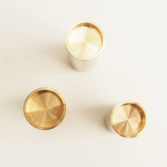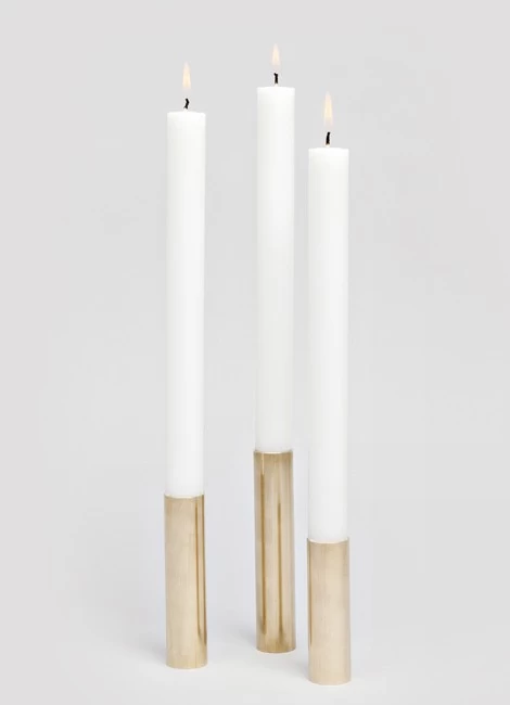 Die drei reduzierten Kerzenständer Lichtenau von Arno Wolf sehen nicht nur besonders aus, sie sind es auch. Auf den ersten Blick wirken sie instabil – bis man sie in die Hand nimmt. Denn sie sind aus massivem Messing oder Kupfer, das ihnen einen festen Stand verleiht. Der Preis gilt für ein Set bestehend aus drei Kerzenständern in drei verschiedenen Höhen. Bitte beachten, Sie kleine Unebenheiten im Metall ein Teil des Produktes sind, dies ist Bestandteil der Arno Wolf Designphilosophie.