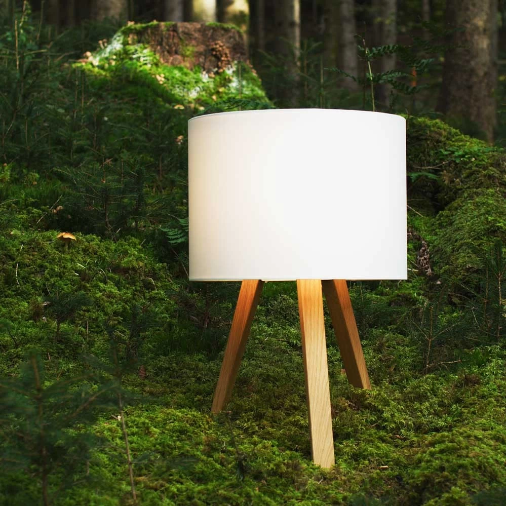 Die 51 cm hohe Luca Tischleuchte ist eine Adaption der Stehleuchte Luca. Die puristische Gestaltung mit dem Stativfuß wird durch die Kombination von Eiche oder Esche und einem hochwertigem Textilschirm in Szene gesetzt.