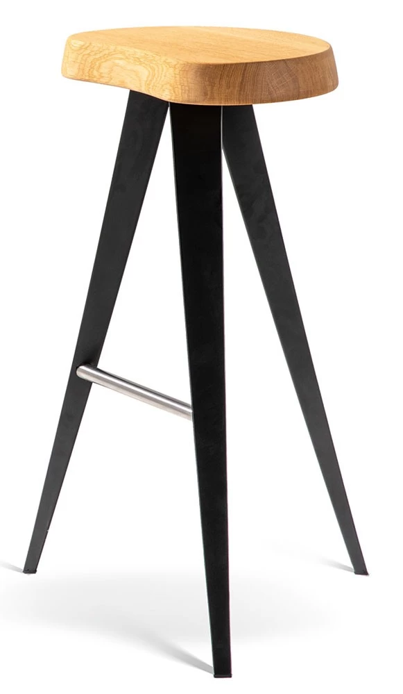 Die rustikal anmutenden Mexique Barhocker entwarf Charlotte Perriand in den 1950er Jahren zusammen mit den gleichnamigen Tischen. Die Gestelle wurde damals von Jean Prouvé produziert, der Massivholzsitz wohl von dem Kunsttischler André Chetaille.