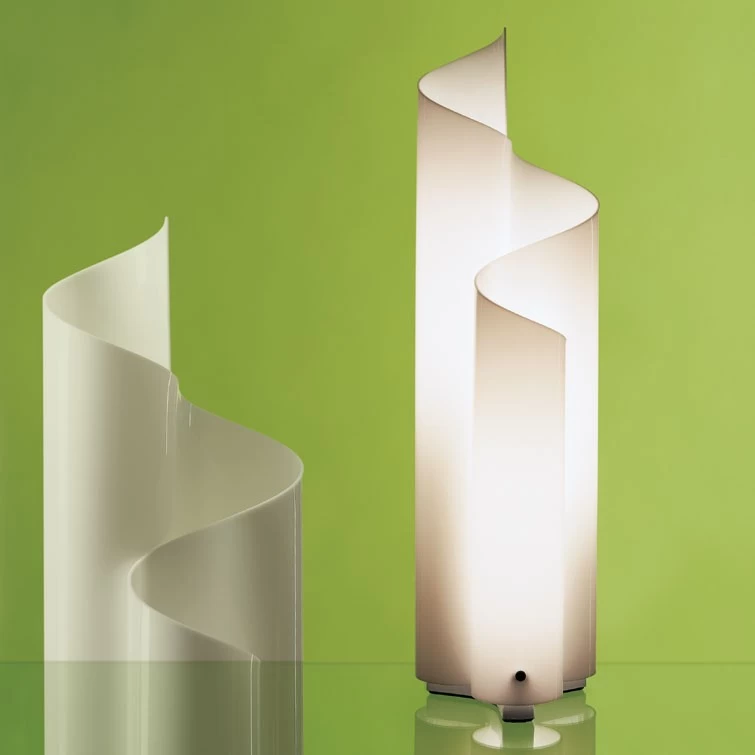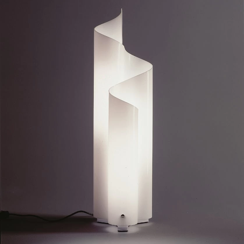 Die Tischleuchte Mezzachimera ist die kleine Version von Vico Magistrettis Leuchtenentwurf Chimera für Artemide aus dem Jahre 1969. Eine Leuchte, die durch ihren weichen Lichtstrahl Ruhe ausstrahlt und durch die gewellte Formgebung des Metacrylat zugleich dynamisch wirkt. Gedacht ist Mezzachimera als Tisch- oder Bodenleuchte.