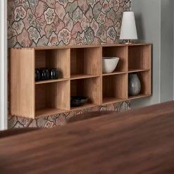 1932 konzipierte Mogens Koch sein modulares, erweiterbares Bücherregal. Das hier angebotene Regal besteht aus zwei Modulen MK55 und ist exemplarisch zu verstehen, denn das System besteht aus verschiedenen Basismodulen, die beliebig kombiniert werden können (wie die Abbildungen zeigen). So können wahlweise ganze Wandregale oder Sideboards erstellt werden – gerne unterbreiten wir Ihnen ein Angebot über Ihre gewünschte Version.