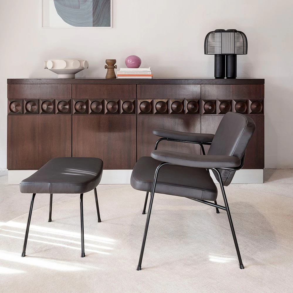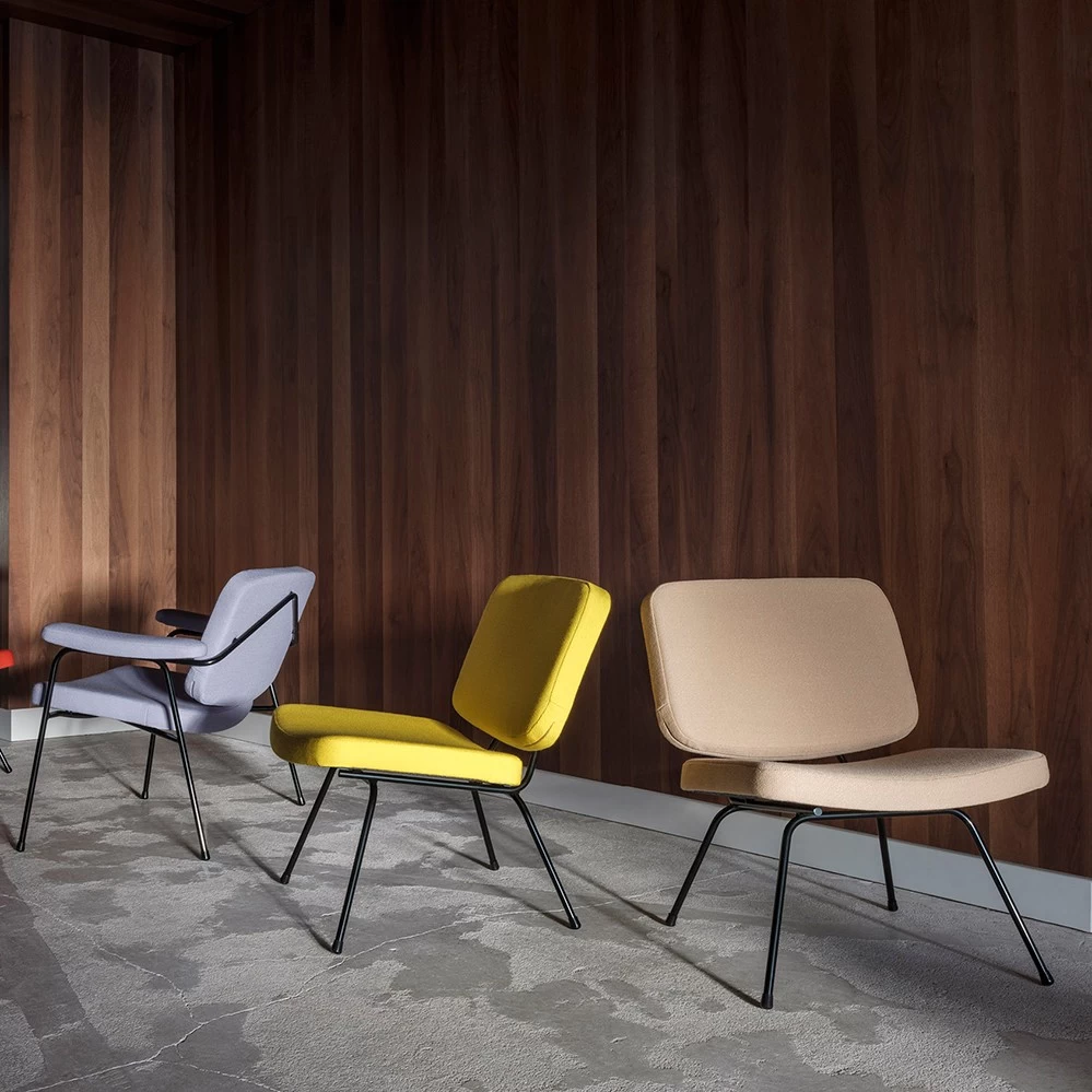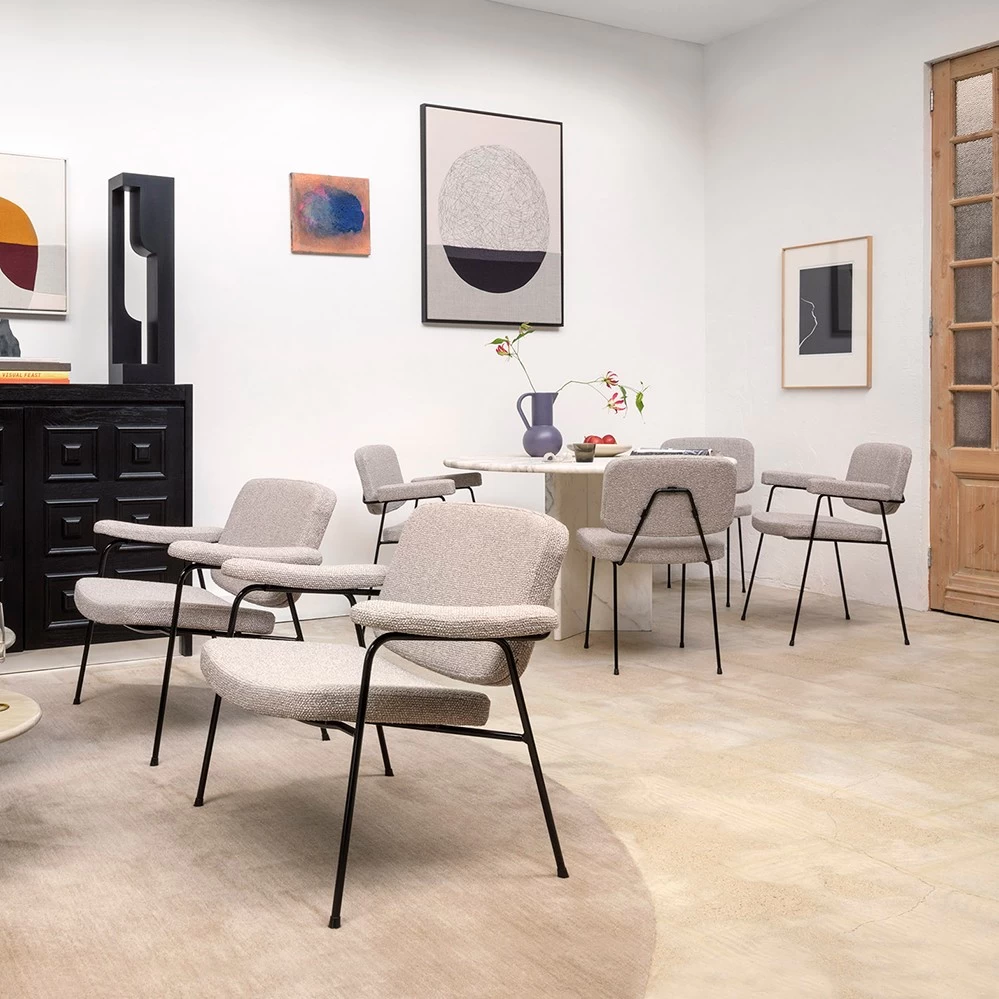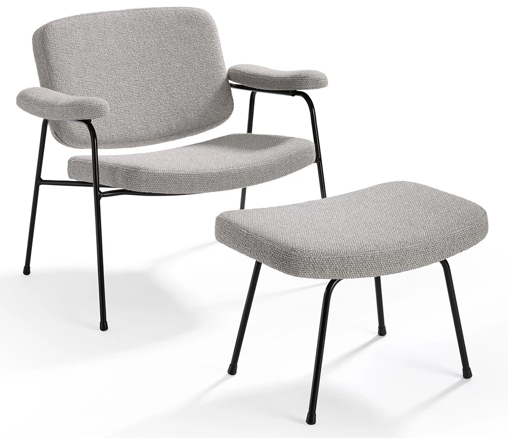 2023 legte Artifort den Moulin Armlehnsessel als Ergänzung zu den Moulin Stühlen von Pierre Paulin auf. Die Moulin Serie ist ein Frühwerk des französischen Designers aus den 1950er Jahren und wurde ursprünglich von Thonet France produziert. 2013 wurden zuerst der Stuhl und der gleichnamige Armlehnstuhl in die Kollektion von Artifort aufgenommen. Der Name leitet sich von der Rue Moulin in Paris ab, wo Pierre Paulin den Stuhl im Jahr 1954 in seinem Atelier kreierte. Optional ist zu dem Sessel einer passender Hocker erhältlich. Das Gestell des Moulin Lounge Chairs ist bei Markanto wahlweise dunkelrot, dunkelgrau, schwarz oder weiß pulverbeschichtet (andere Farben gerne auf Anfrage), der Sessel ist mit den Bezugsstoffen Artifort Selecte oder Hallingdal bei Markanto erhältlich (andere Stoffe gerne auch auf Anfrage).