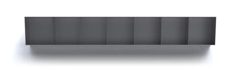 Das sehr reduzierte Aluminium-Wandregal K7V90 gilt als einer der Klassiker von Maarten von Severen und wird seit 2013 wieder von Lensvelt produziert. Der minimalistische Entwurf mit den sieben Regalfächern erfolgte 1990.