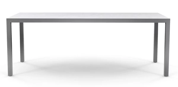 - Reduzierter Aluminiumtisch in drei Standardgrößen