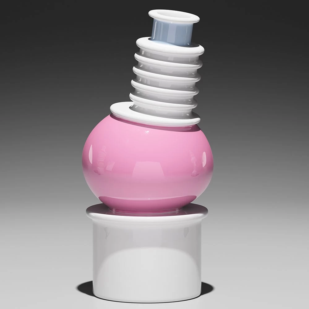 Neben zahlreichen Möbeln und Leuchten umfasst die Memphis Kollektion verschiedene Glas- und Keramikobjekte wie die Nilo Vase von Ettore Sottass. Der Entwurf aus dem Jahr 1983 zählt zu der dreiteiligen Porzellanserie Rivers, bestehend aus den Vasen Nilo, Tigris und Euphrates. Weitere Memphis Objekte gerne auf Anfrage.