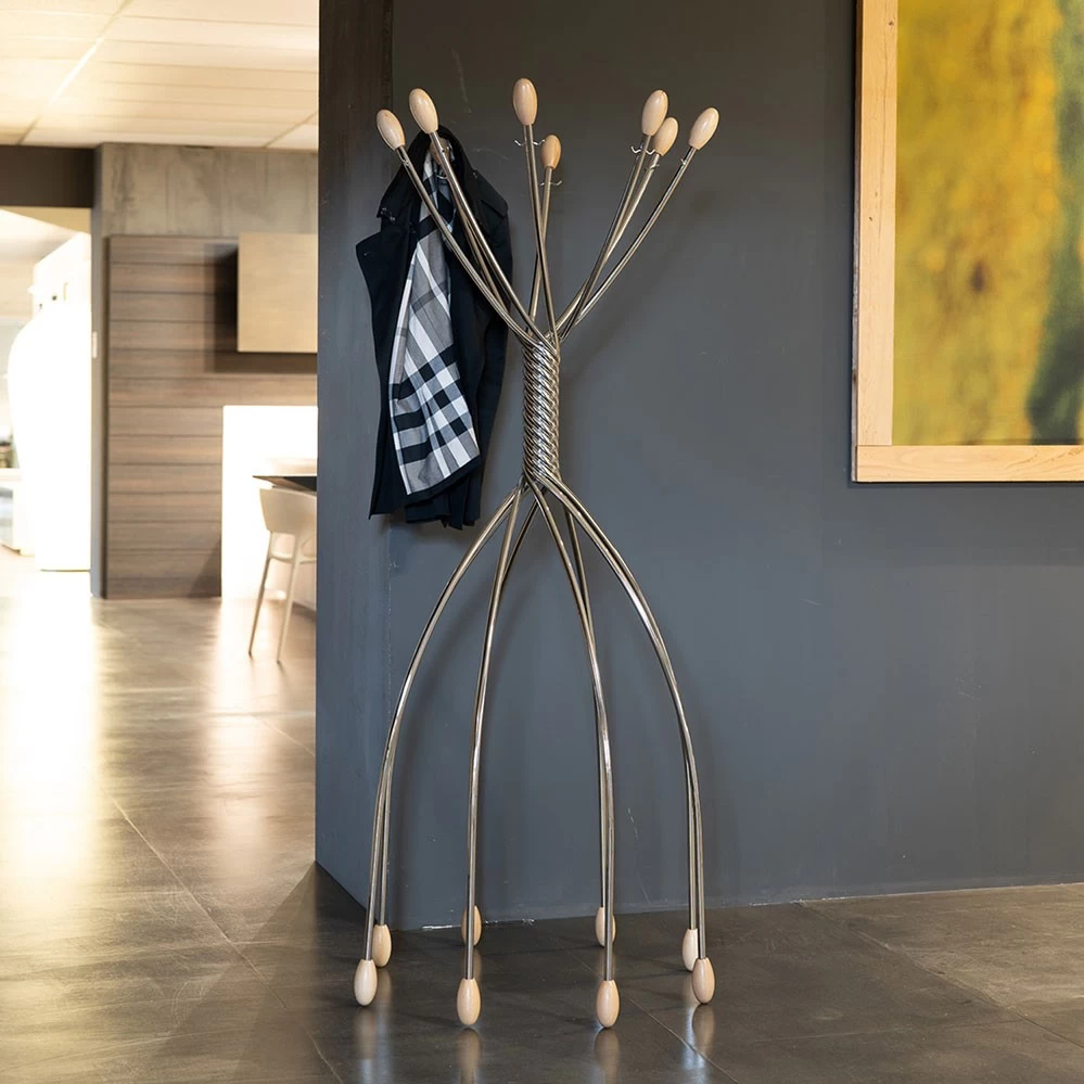 Eine Ikone des italienischen Designs ist sicherlich der Kleiderständer Sciangai von Zanotta. Aber die Designer Gionatan de Pas, Donato d’Urbino und Paolo Lomazzi (Studio DDL) entwarfen später auch eine weitere Garderobe – das Modell Octopus im Jahr 1990. An einen Tuintenfisch erinnert auch die Formgebung. 2019 wurde der Octopus von dm italienischen Label Codiceicona wieder aufgelegt.