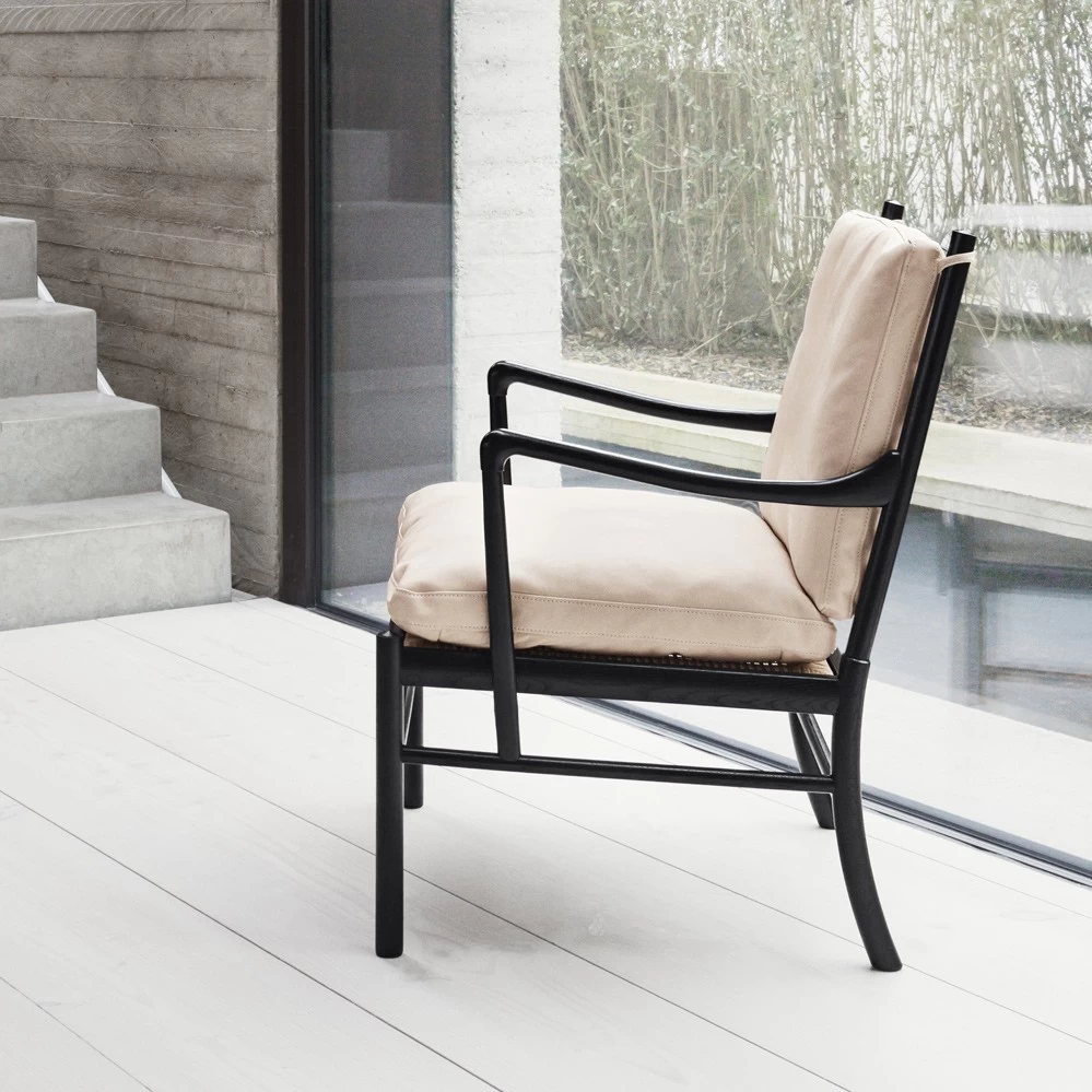 Bereits 1949 entwarf Ole Wanscher eines seiner Meisterstücke – den Colonial Chair. Der leichte, organisch geformte Sessel enthält zwei opulente Lederkissen, die einen hohen Sitzkomfort vermitteln. Besonders in Deutschland erfreut sich der Colonial Chair immer noch großer Beliebtheit. Früher hergestellt von AJ Iversen, wird der Klassiker nun seit einigen Jahren von Carl Hansen in Dänemark produziert. Neben der hier angebotenen klassischen Lederversion ist der Colonial Sessel auf Anfrage in Stoff erhältlich.