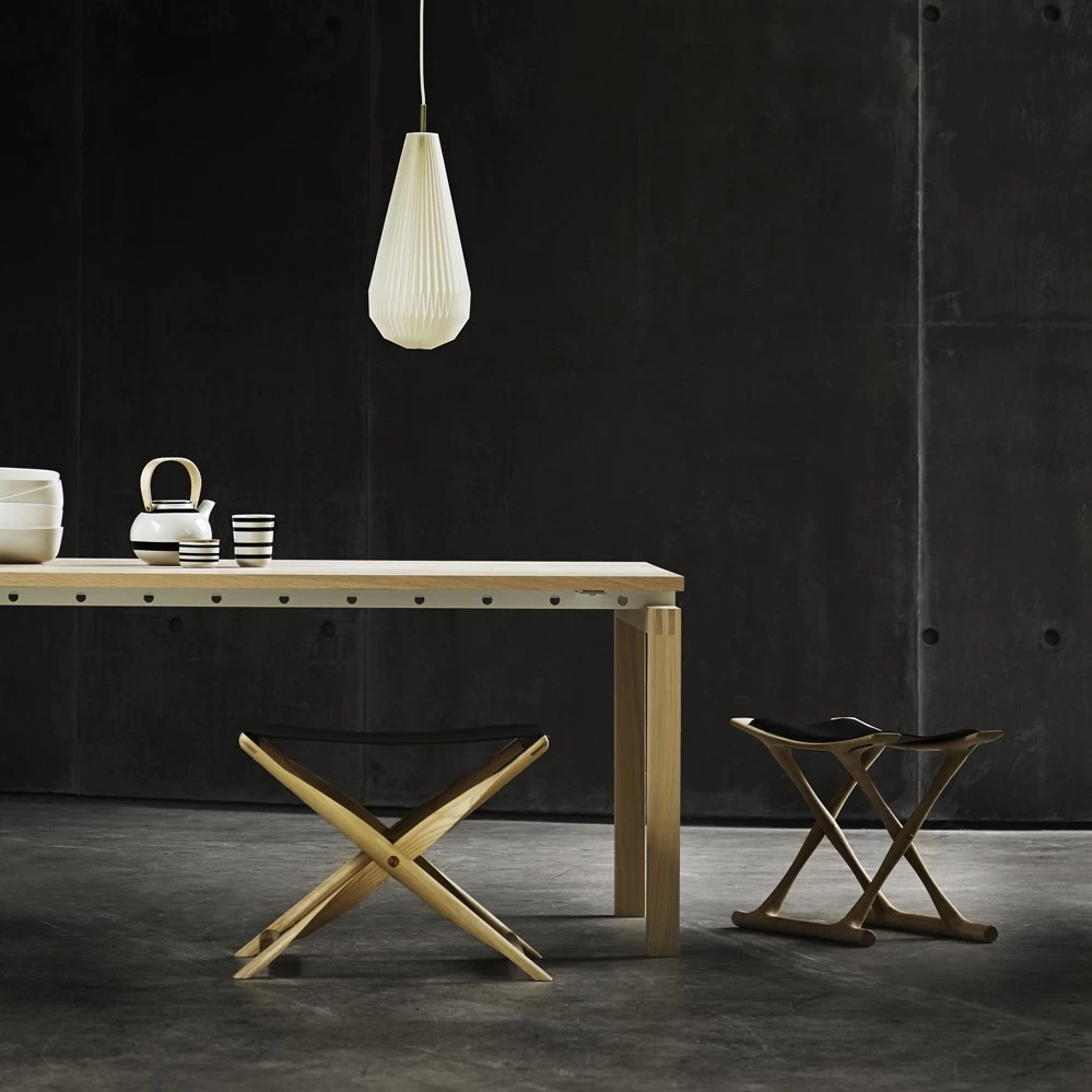 Der „Ägyptischer Hocker” entstand als Konzeptentwurf in den 1930er Jahren, nachdem Ole Wanscher im ägyptischen Museum in Brlin einen über 3.000 Jahre alten antiken Hocker eines Pharaonen entdeckte. Aber erst in den 1960er Jahren wurde der Falthocker erstmalig produziert.