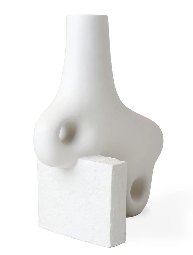 Die ca. 36 cm hohe Paradox Vase ist die größte Vase der dreiteiligen Serie von Jonathan Adler, die künstlerischen Vasen erinnern an Skulpturen von Künstlern wie Barbara Hepworth oder Henry Moore. Der Entwurf ist eine Weiterentwicklung seiner Reform Pebble Vasen aus dem Jahr 2018, wo der New Yorker Designer bereits mit der organischen Form spielte. Bekannt wurde die Vasenserie aus dem Almodovar Kinofilm „Madres Paralelas” mit Penélope Cruz und Milena Smit.