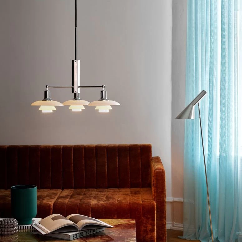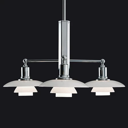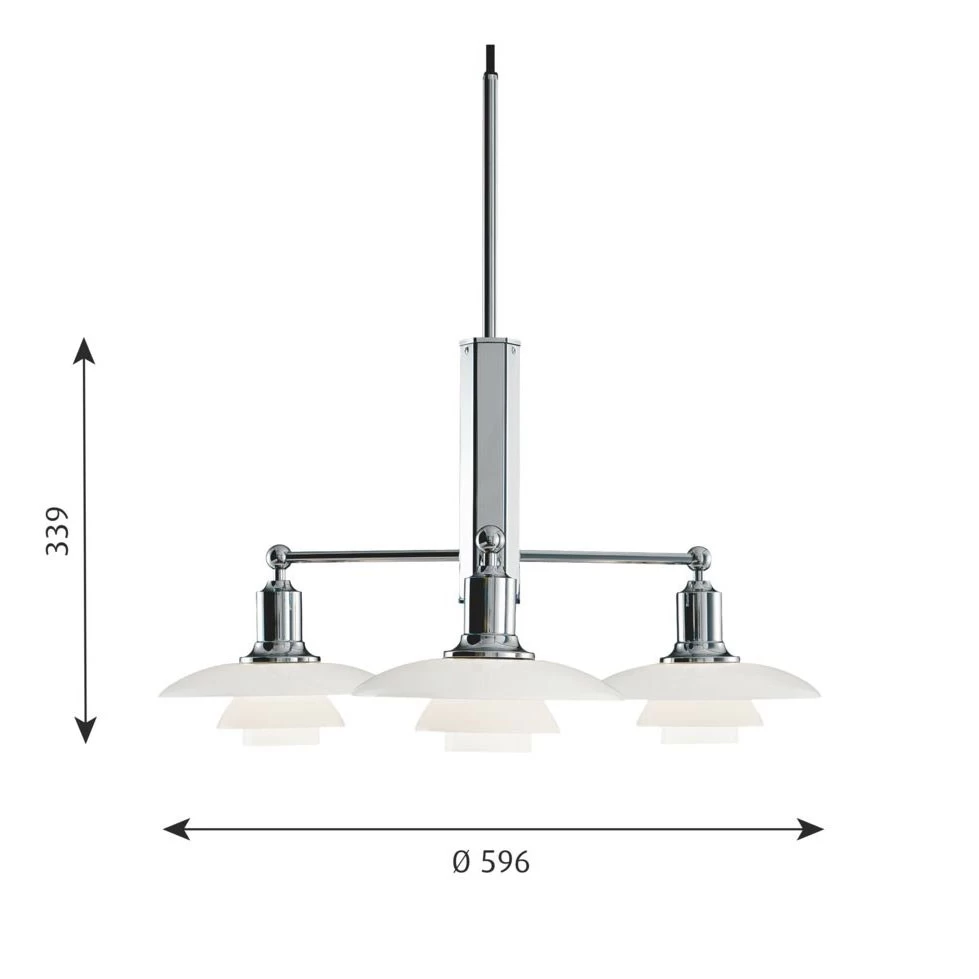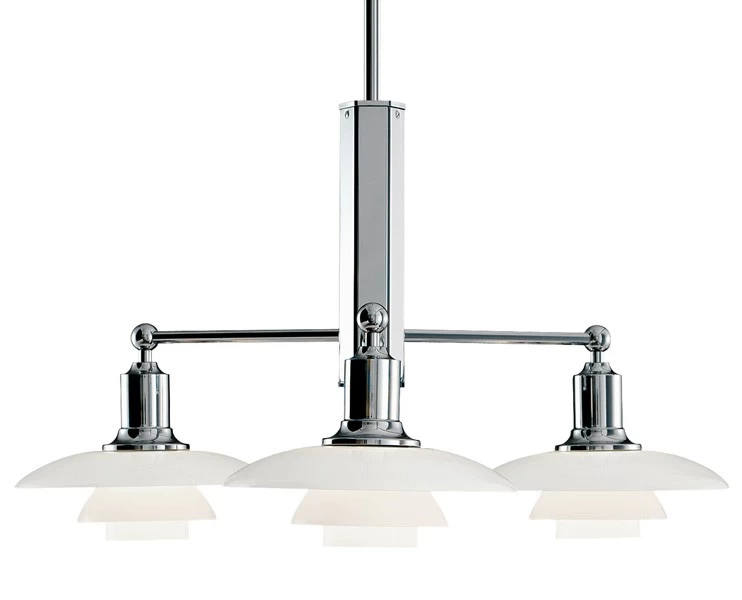 Der dreiarmige Kronleuchter PH 2/1 Stammkrone ist ein früher Entwurf von Poul Henningsen und wurde schon in den 1930er Jahren von Louis Poulsen hergestellt.