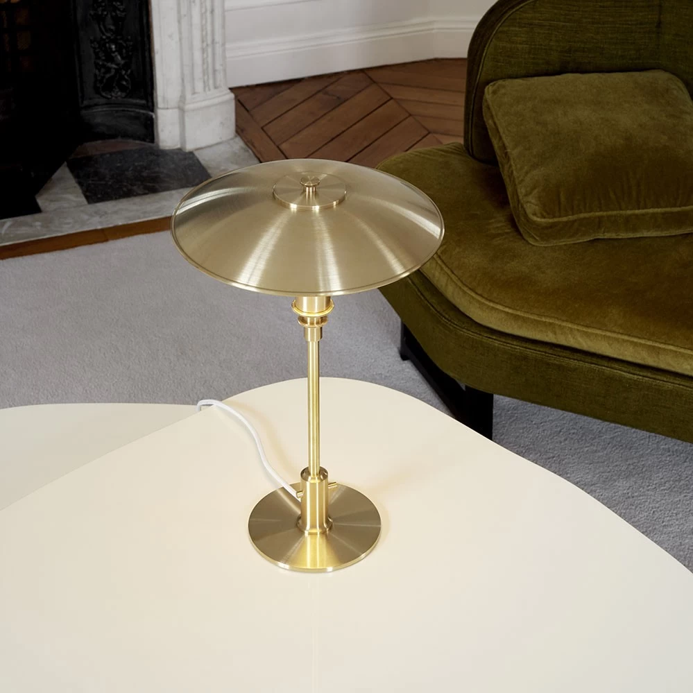 Louis Poulsen präsentierte zum Herbst 2022 eine limitierte Sonderausführung der Tischleuchte PH 3/2. Diese exklusive Ausführung überzeugt mit mundgeblasenen Schirmen aus italienischem Glas und einem Gestell aus unbeschichtetem Messing. Ein besonders Detail der Leuchte ist der historische Schaltmechanismus in Form eines Stiftes. Nur noch ein Exemplar verfügbar!