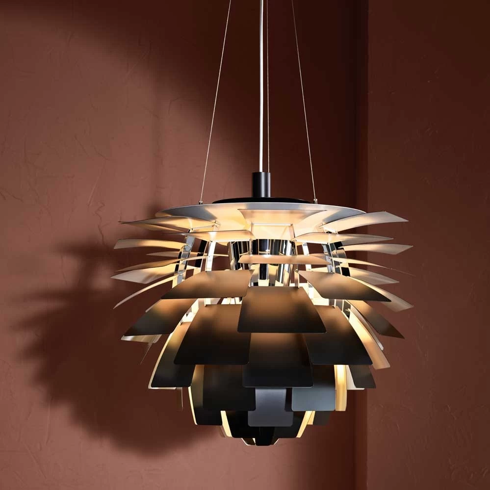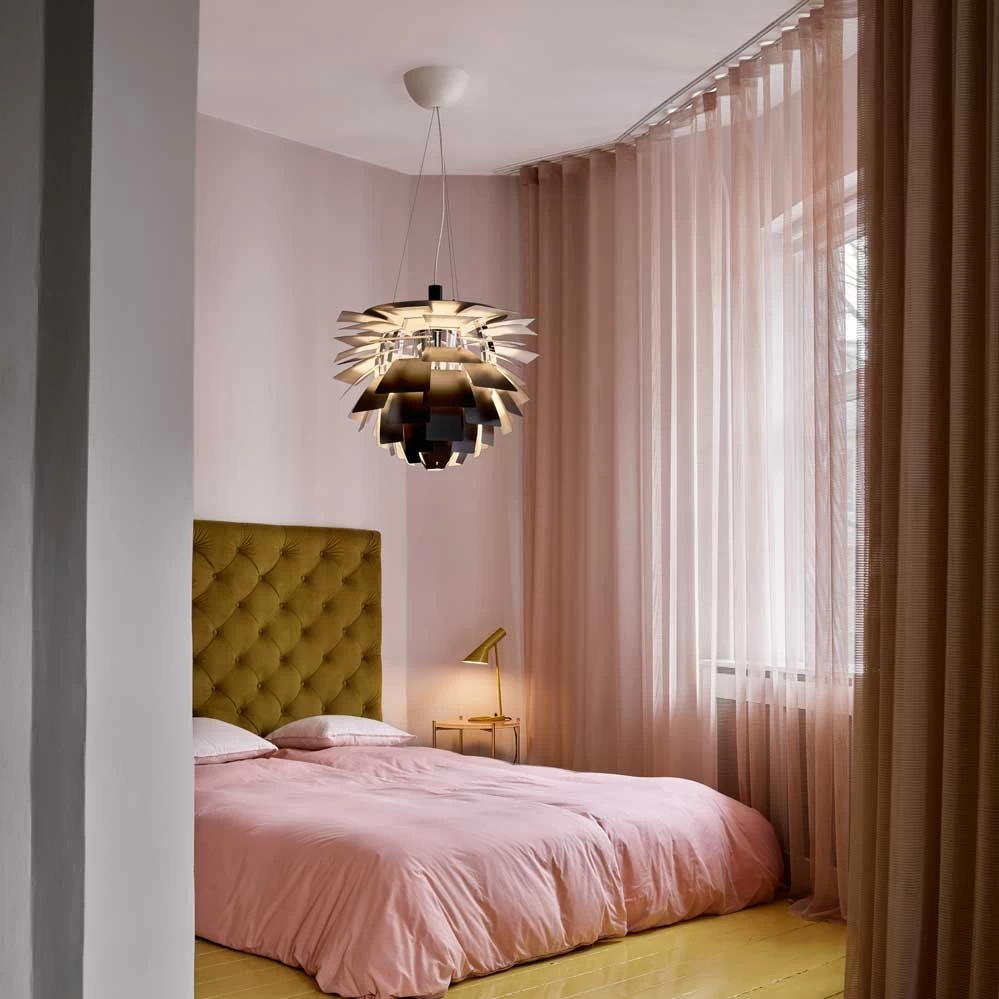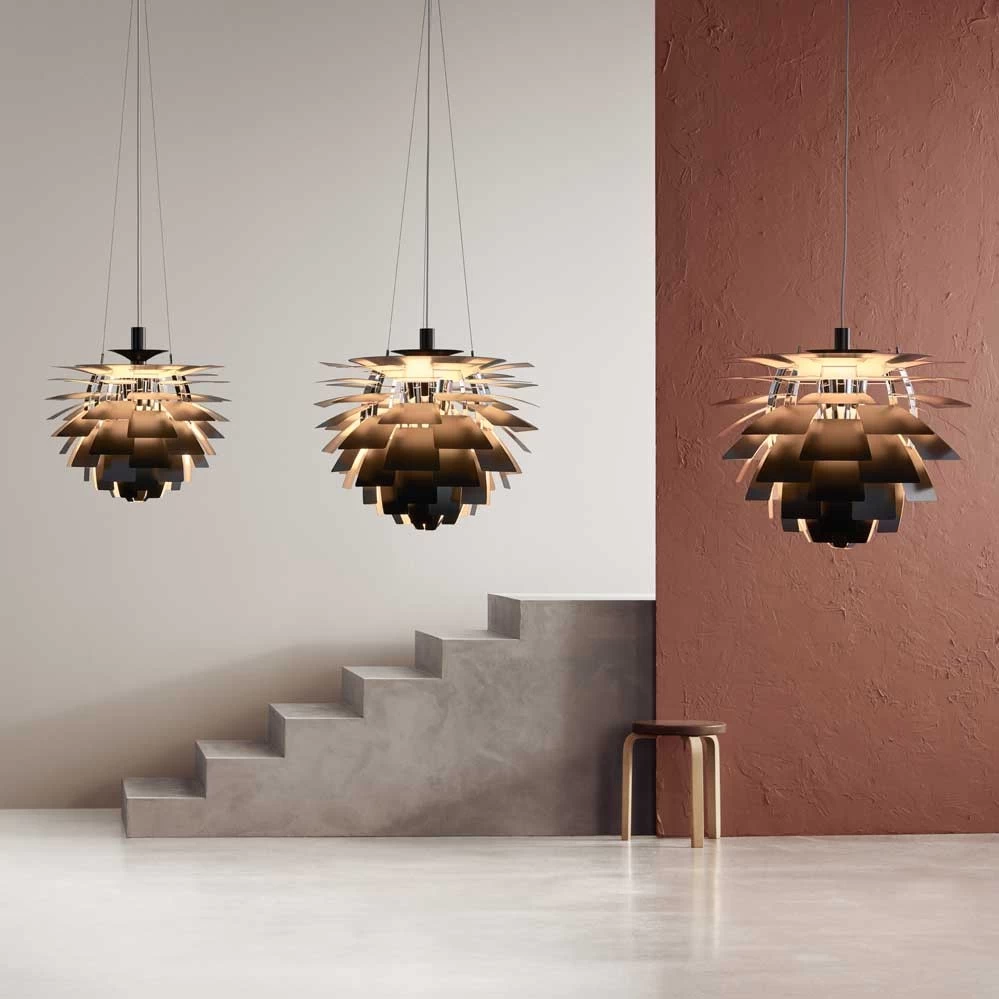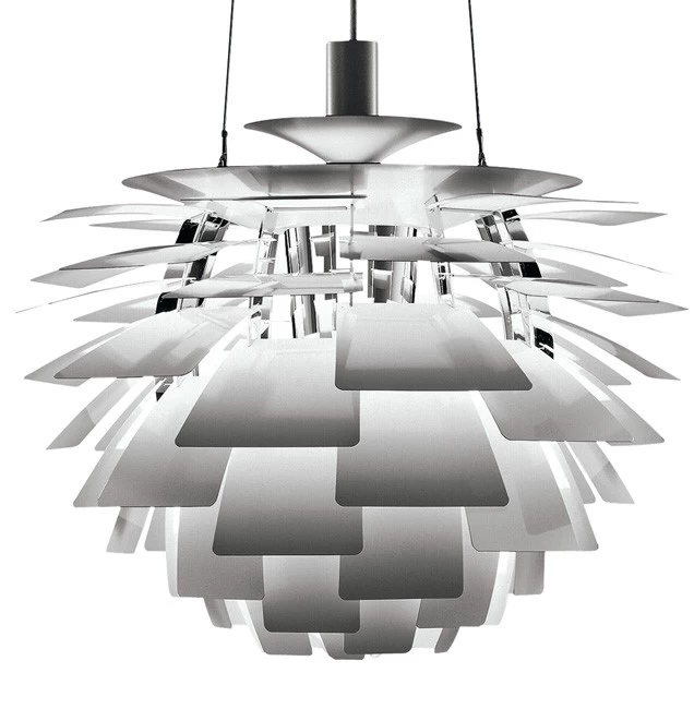 Der Entwurf der Artichoke basiert auf genauesten Berechnungen des Lichtfalls, 72 Lamellen brechen das Licht, hell lackierte Unterseiten sorgen für eine durchdachte Streuung. Der Entwurf entstand im Jahr 1958 für den Langelinie Pavilion in Kopenhagen, eine der Inkunabeln der dänischen Architektur der 1950er Jahre. Poul Henningsen gilt als der wichtigste Leuchtenentwerfer Dänemarks, seine Kreationen fanden sich schon in den 1930er Jahren in zahlreichen Bauhaus-Modellhäusern. Die erste PH-Leuchte (PH steht für seine Initialen) entstand bereits 1926 und wurde damals wie heute von Louis Poulsen hergestellt.