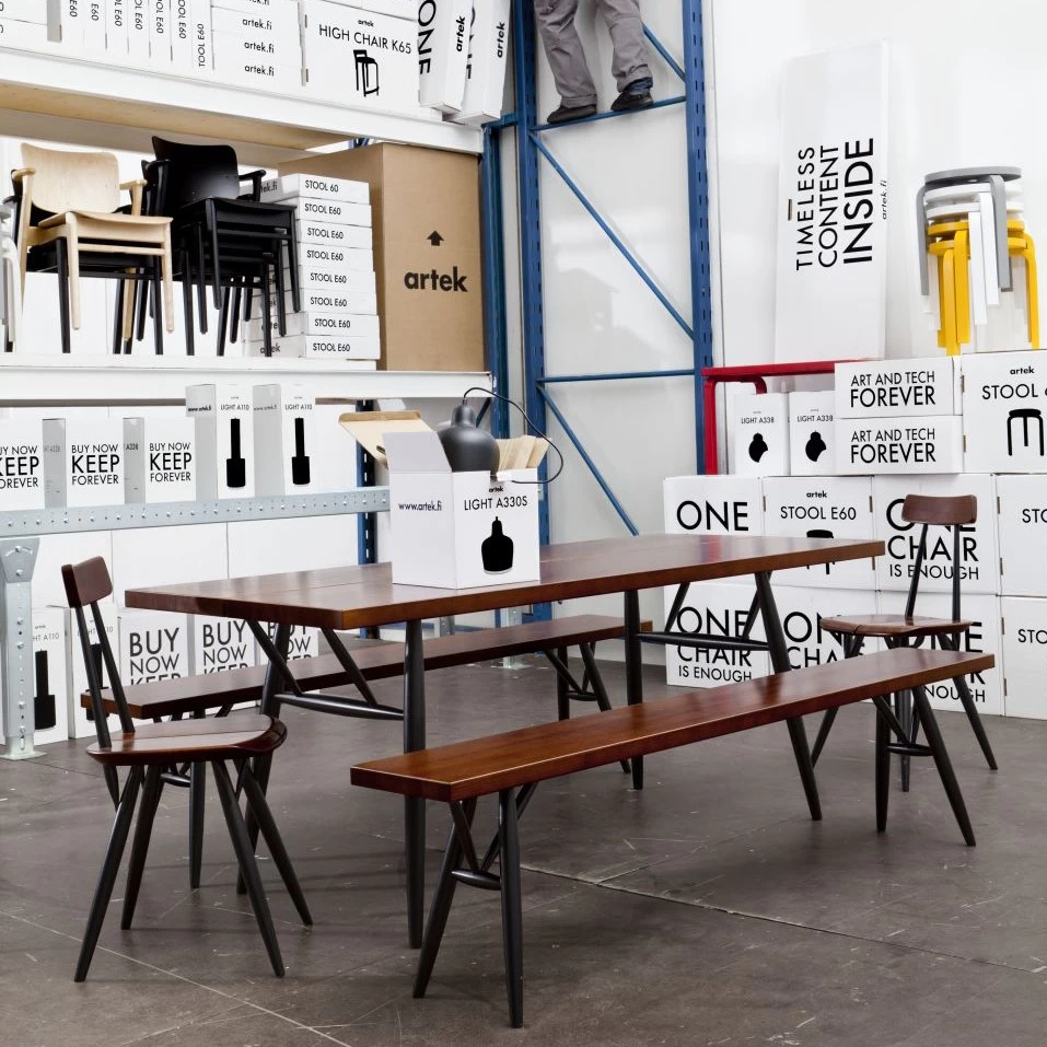 Der Pirkka Esstisch von Artek ist nach unserer Ansicht einer der schönsten Tische überhaupt. Als Ergänzung zu dem Pirkka Tisch sind dabei die gleichnamigen Pirkka Sitzbänke sehr empfehlenswert – kombiniert zum Beispiel mit einem Eames Plastic Chair von Vitra. Aktuell ist der finnische Designklassiker in zwei Größen erhältlich: