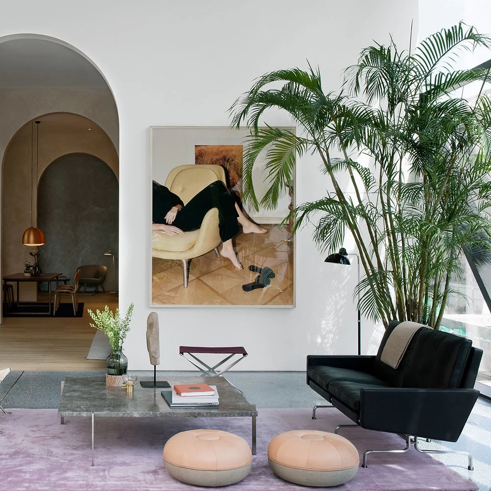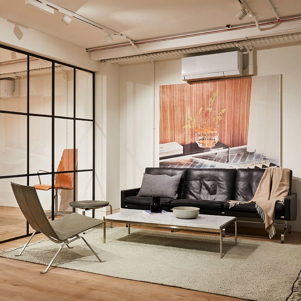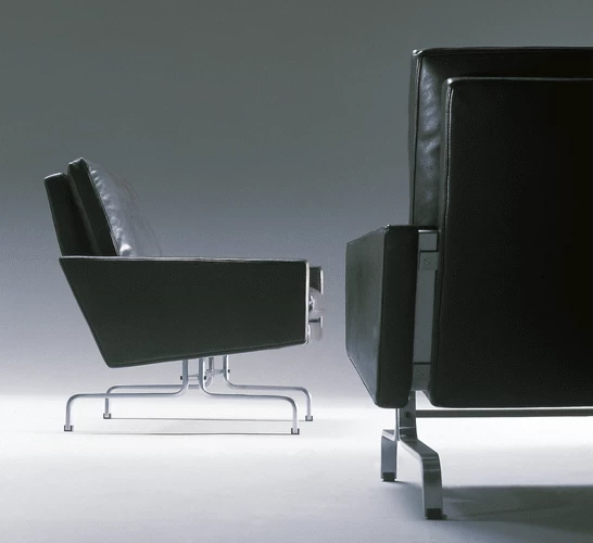 1958 entwickelte Poul Kjaerholm sein Sitzprogramm PK31. Diese drei Sitzmöbel ruhen dabei auf einem massiven Federstahlgestell, die quadratische Würfelform von 76 x 76 x 76 cm verleiht dem Entwurf ein reduziertes, sehr puristisches Design. Dabei vereint die PK 31 Serie eleganten Luxus mit Komfort. Die Kollektion von Fritz Hansen umfasst den Sessel PK31/1, das zweisitzige Sofa PK31/2 sowie das dreisitzige Sofa PK31/3.