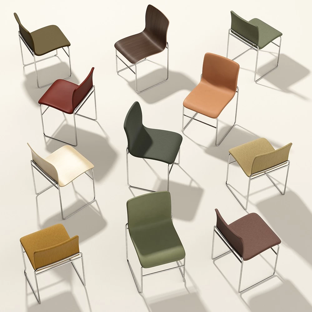 Der stapelbare Pocket Chair war einer von Joe Colombos letzten Entwürfen und entstand in seinem Todesjahr 1971. Der Schichtholzstuhl war sicherlich für die Massenbestuhlung vorgesehen, 2024 wurde der Entwurf von Karakter als Stuhl und Barstuhl neu aufgelegt. Auf Anfrage sind die Möbel auch in einer gepolsteren Variante erhältlich.