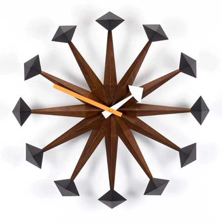 Die Polygon Clock aus Nussbaumholz wurde ursprünglich vom Architektur- und Designbüro von George Nelson für die Uhrenserie Clocks ahead of Time im Jahr 1961 entworfen. Das eigentliche Design der Wheel Cock wird dabei dem George Nelson Mitarbeiter Irving Harper zugeschrieben, der an diesem Projekt sehr intensiv mitwirkte.