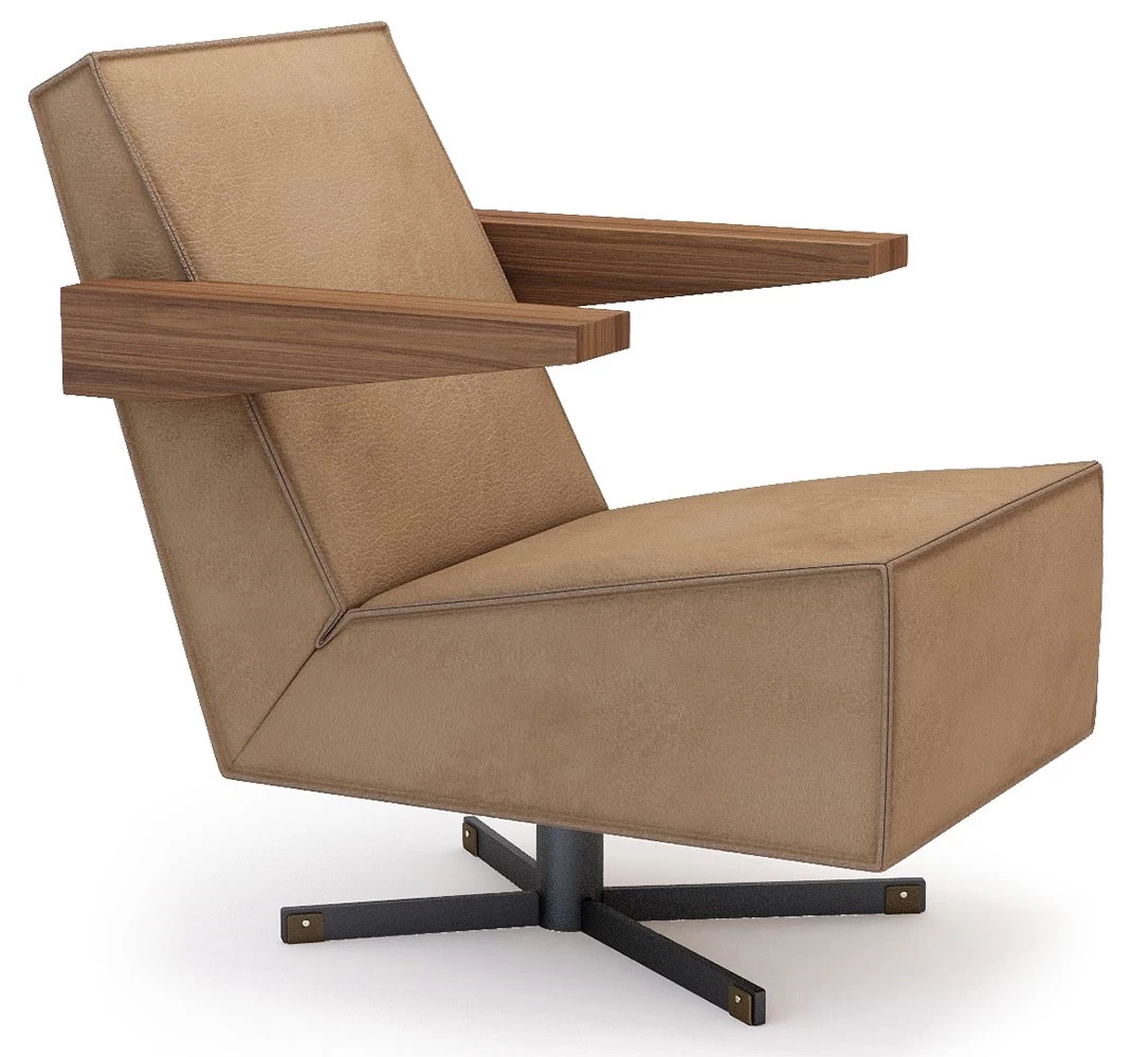 Für den Pressebereich des UNESCO-Gebäudes in Paris entwarf Gerrit Rietveld im Jahr 1958 den Press Room Chair. Gedacht war der Entwurf als komfortabler Lounge Chair für die Journalisten. Da jedoch für die Einrichtung nur wenig Budget übrig war, konnte der Entwurf damals nicht realisiert werden, erst 2015 wurde der drehbare Sessel von Rietveld Originals und Spectrum basierend auf den Originalzeichnungen aufgelegt (siehe Entwurfszeichnung, letzte Abbildung). Gerrit Rietveld erlernte zuerst den Beruf des Möbeltischlers in der Werkstatt seines Vaters, anschließend belegte er Kurse im Architekturzeichnen und eröffnete 1911 seine eigene Möbeltischlerei. Im Jahr 1919 ließ er sich als selbstständiger Architekt in Utrecht nieder. In dieser Zeit machte er die Bekanntschaft mit der Künstlergruppe De Stijl, der er sich im Jahr 1918 anschloss. Bekannt wurde Gerrit Rietveld vor allem durch seinen rot-blauen Stuhl (Red and Blue Chair), der das De Stijl Prinzip als dreidimensionales Möbel umsetzte. Mit dem sogenannten Rietveld-Schröder-Haus in Utrecht schrieb er dann Architekturgeschichte, heute zählt das um 1924 entworfene Haus zum UNESCO-Weltkulturerbe. Rietveld hat jedoch ein viel umfangreicheres Werk hinterlassen, über 1.000 Entwürfe für Häuser oder Möbel sind heute bekannt.
