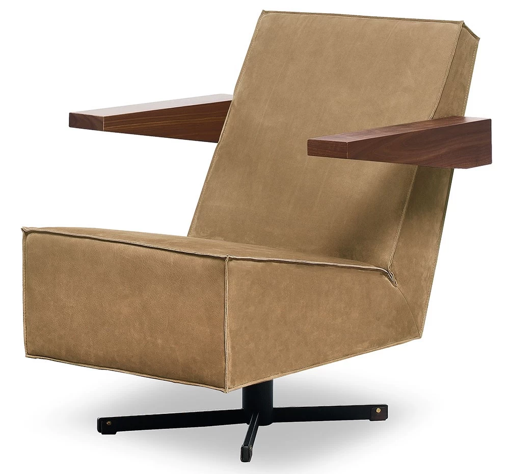 2022 legte Spectrum fünf farblich abgestimmte Beauty Versionen des Press Room Chair von Gerrit Rietveld auf. Bei der Natural Comfort Version dreht sich alles um natürliche Materialien und Grundfarben im Wohnbereich, nachhaltige Entscheidungen mit Liebe zur Natur. Ein puristisches Interieur bekommt mit dem Press Room Chair aus strapazierfähigem Nubuk-Leder einen kraftvollen Look. Die Armlehnen sind bei der Edition aus massivem amerikanischem Nussbaum gefertigt und der schwarze Drehfuß ist mit dunkelbraunen Lederapplikationen ausgestattet.