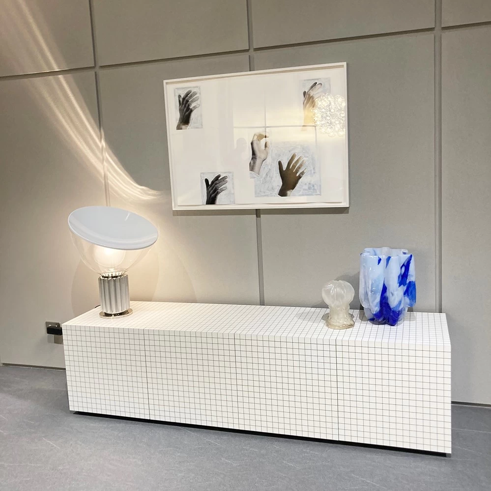 2023 präsentierte Zanotta weitere Objekte der Quaderna Serie von Superstudio wie das niedrige Sideboard, dass uns auf Anhieb begeistere, Der reduzierte Entwurf ist Bestandteil einer Möbelkollektion, die das Avantgarde-Designkollektiv Superstudio ab 1969 für Zanotta entwarf. Charakteristisches Merkmal der Serie war ein Karomuster, womit die Möbel bezogen wurden. Die ursprüngliche Zanotta Kollektion enthielt dabei neben verschiedenen Hockern auch Wandverkleidungen und weitere Möbel. Diese grafische Lösung fand damals sehr viel Beachtung. Heute umfasst die Kollektion die Quaderna Sitzbank, die Quaderna Konsole und den gleichnamigen Esstisch – und seit 2022 den Schreibtisch und einen niedrigen Couchtisch.
