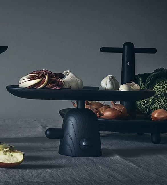 Inspiriert vom grafischen und architektonischen Werk von Le Corbusier schuf Jaime Hayon 2015 die Serie Réaction Poétique. Insgesamt umfasst die Cassina Kollektion vier Objekte als Tafelaufsätze, ein Tablett sowie zwei skulpturale Beistelltische. Die Réaction Poétique Serie ist in zwei verschiedenen Beizungen (schwarz und schlamm) sowie in Nussbaum erhältlich.