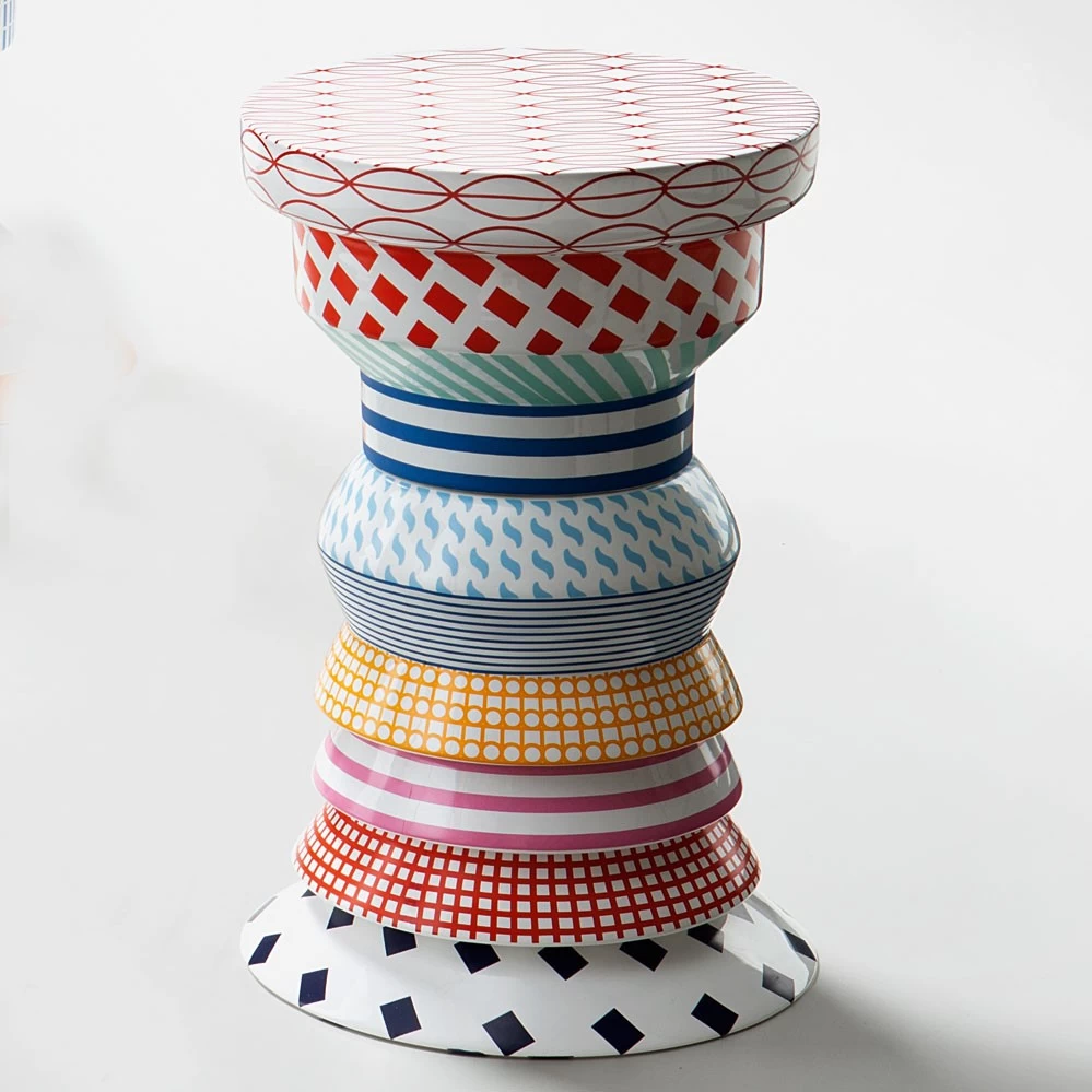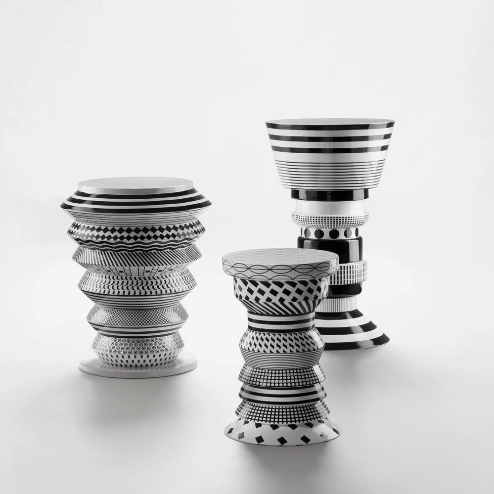 Der 40 cm hohe Regina Keramikbeistelltisch von Pepa Reverter ist wahlweise mit einem schwarz-weißen oder einem bunten Dekor erhältlich, die Bemalung erfolgt bei Bosa aufwendig in Handarbeit.