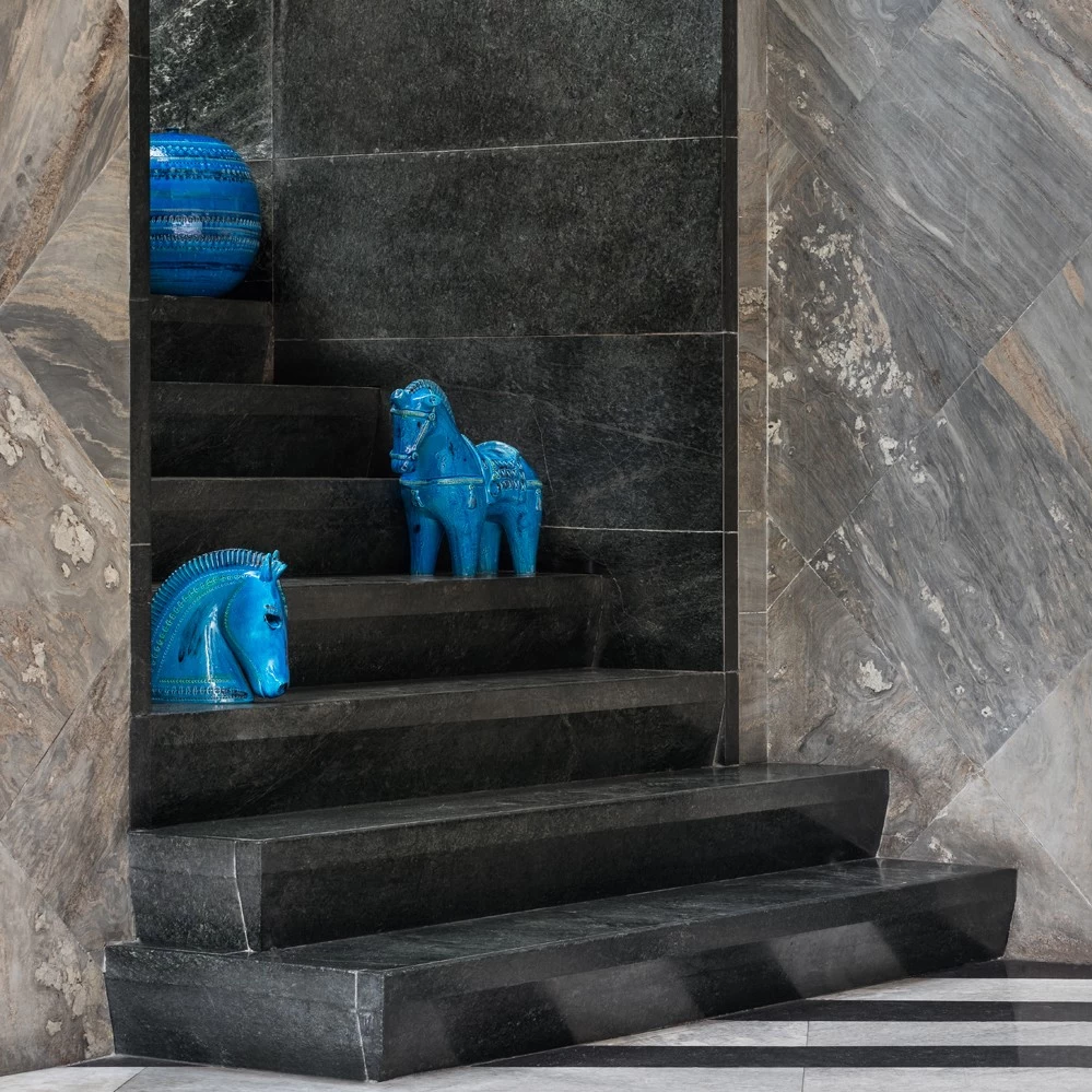 Die Manufaktur Bitossi, gegründet 1921 von dem Italiener Guido Bitossi, erfuhr durch den Eintritt von Aldo Londi als Art Direktor im Jahre 1946 eine wichtige Veränderung. Durch seinen Einfluss wurde es möglich, Keramik-Objekte auch in Serie zu produzieren. In seinen Entwürfen verschmelzten Funktionalität und Ästhetik. Sein sicherlich bekanntester Entwurf ist die Keramik-Kollektion Rimini Blu, die zwischen 1957 und 1965 entstand. Die Kollektion umfasst über 150 Entwürfe, von Schalen, Vasen, Aschenbechern bis hin zu Tierfiguren in unterschiedlichen Formen und Größen. Gemeinsam sind bei allen Entwürfen das charakteristische Muster und die blaue Glasur. Markanto zeigt beispielhaft eine kleine Auswahl, weitere Objekte gerne auf Anfrage.