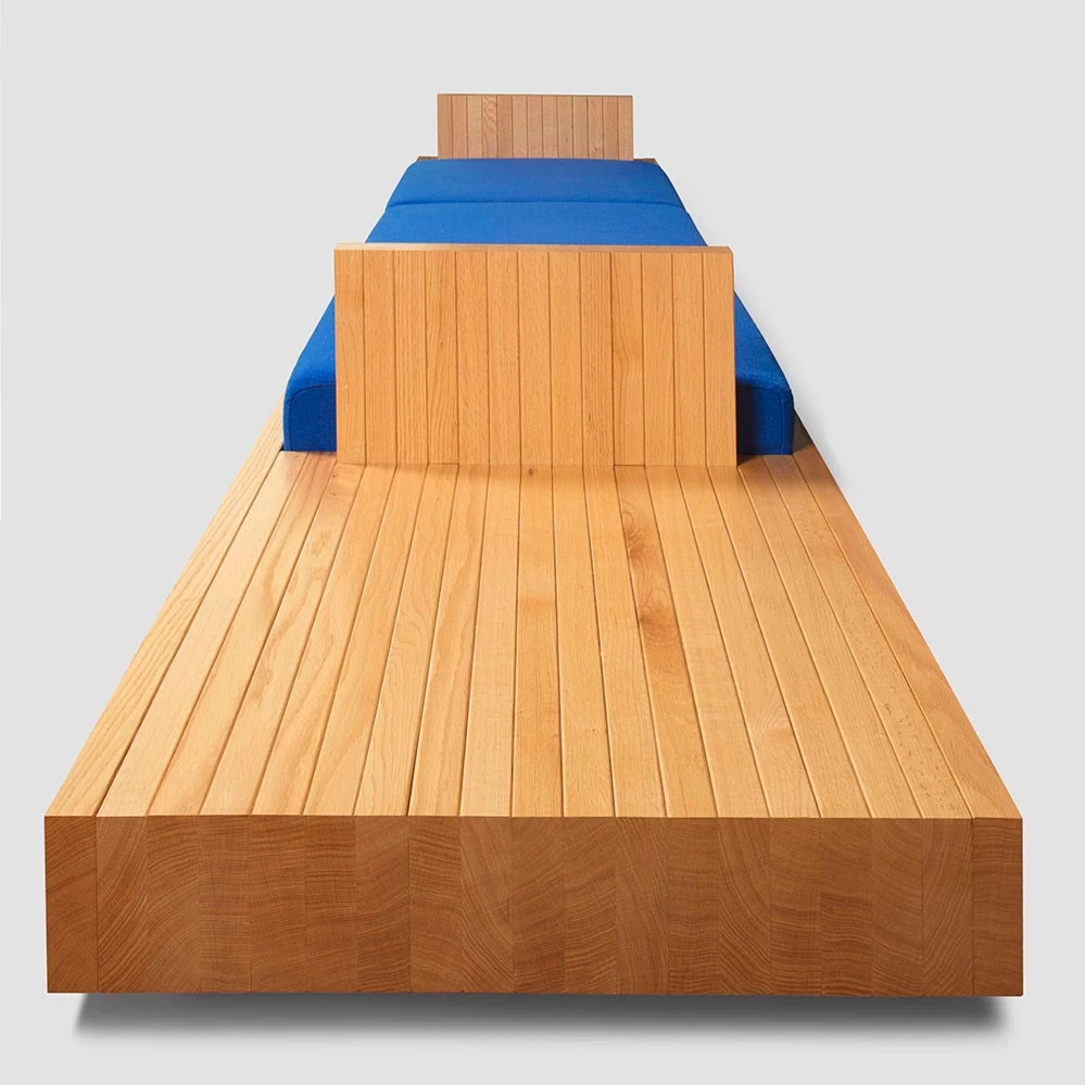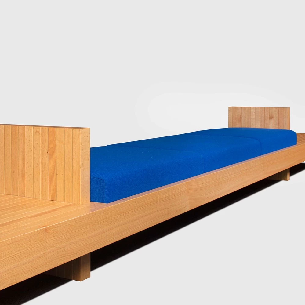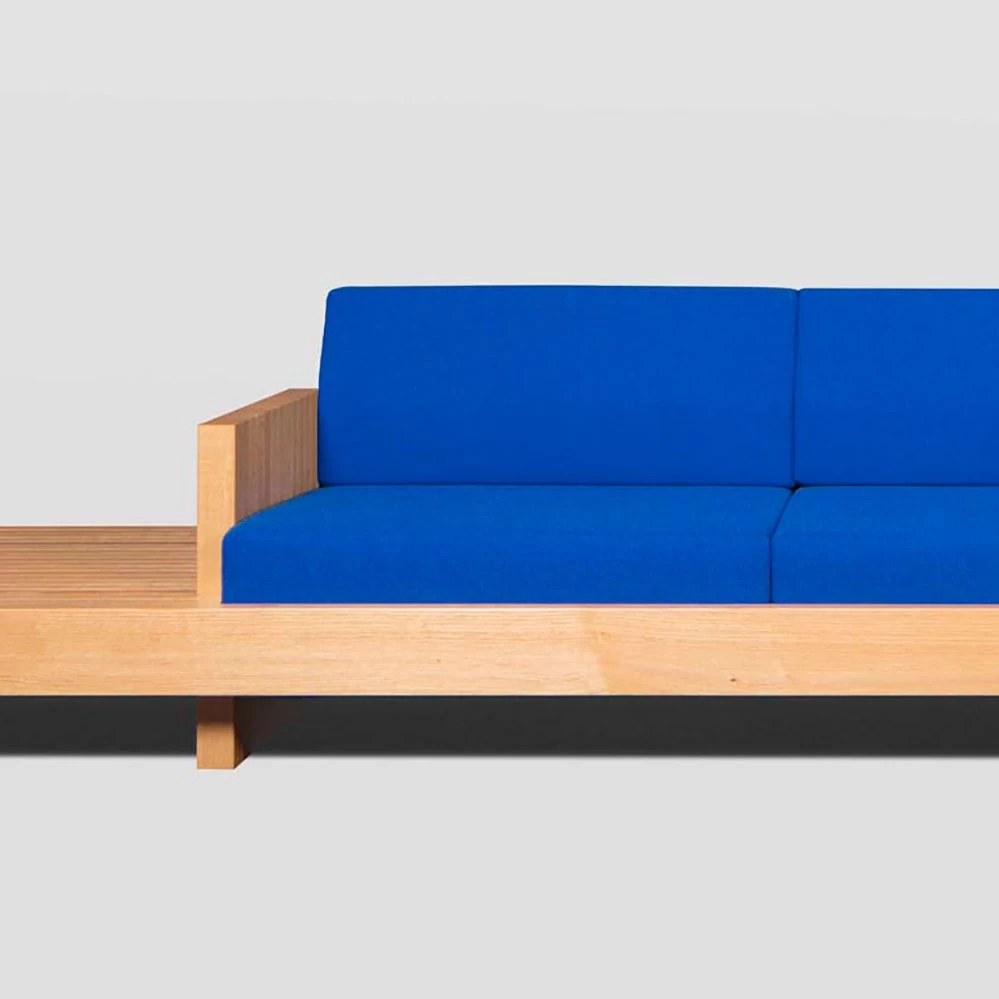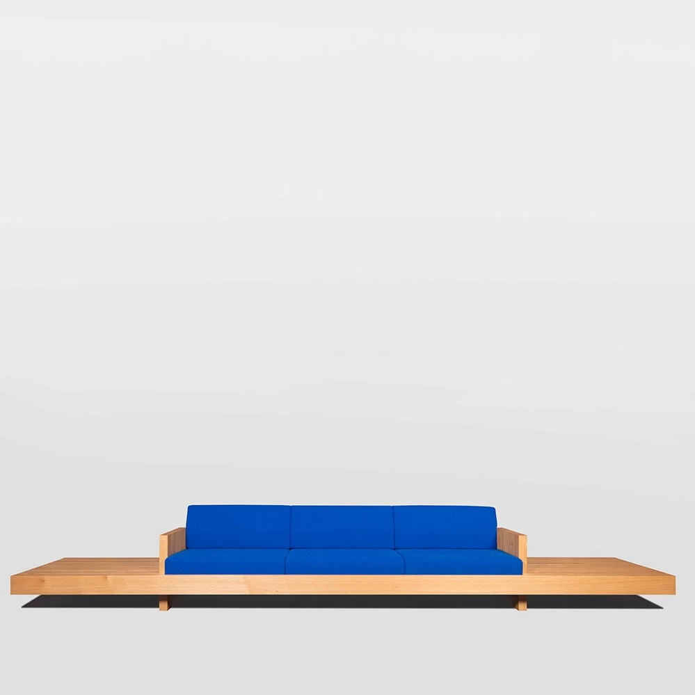 Ein Meisterwerk des kalifornischen Architekten Ray Kappe ist das 486 cmlange Sofa aus Douglasie-Holz. Dabei kann die Länge noch an die individuelle Wohnsituation angepasst werden. Hergestellt in Deutschland, verkörpert das Design das Lebensgefühl des Mid Century Designs an der amerikanischen Westküste, gleichzeitig erinnert die Formensprache an Arbeiten von Frank Lloyd Wright.