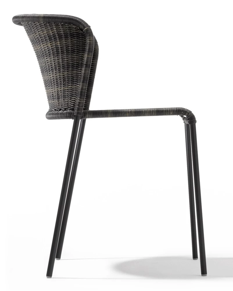 Im Gegensatz zu dem Originalentwurf aus Rattan ist bei der Outdoor-Variante des stapelbaren Hirche-Stuhls die Schale mit einer Kunstfaser ausgestattet, die für den Außeneinsatz geeignet ist. Das Kunstfasergeflecht ist sehr widerstandsfähig, abwaschbar und pflegeleicht, beständig gegen Sonnenlicht und Temperatur-Schwankungen. Es ist ungiftig und zu 100 % recyclingfähig.