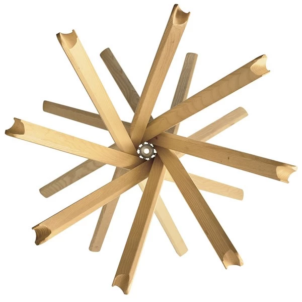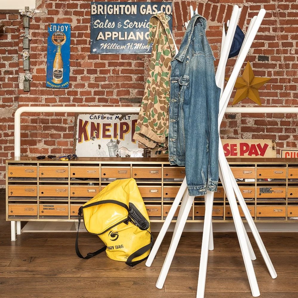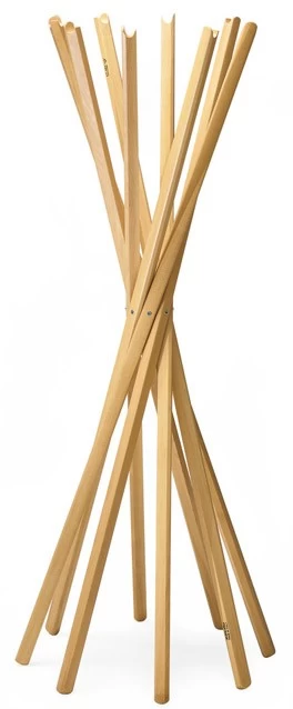 In den 1970er Jahren schuf das Designtrio De Pas, D’Urbino und Lomazzi für Zanotta mit Sciangai eine zeitlose Garderobe mit einer verblüffend einfachen Konstruktion – wie bei einem Mikadospiel wirken die einzelnen Holzelemente des zusammenfaltbaren Kleiderständers.