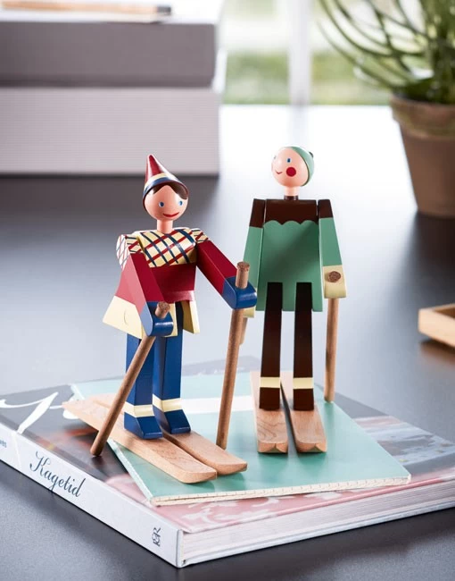 Im Gegensatz zu seinen meist abstrakten Tierfiguren überraschen die beiden Skiläufer von Kay Bojesen durch ihren freundlichen und menschlichen Gesichtsausdruck. Der Skiläufer Boje ist dabei die maskuline Variante, das weibliche Pendant ist die Skiläuferin Datti. Der Entwurf stammt bereits aus dem Jahr 1945.