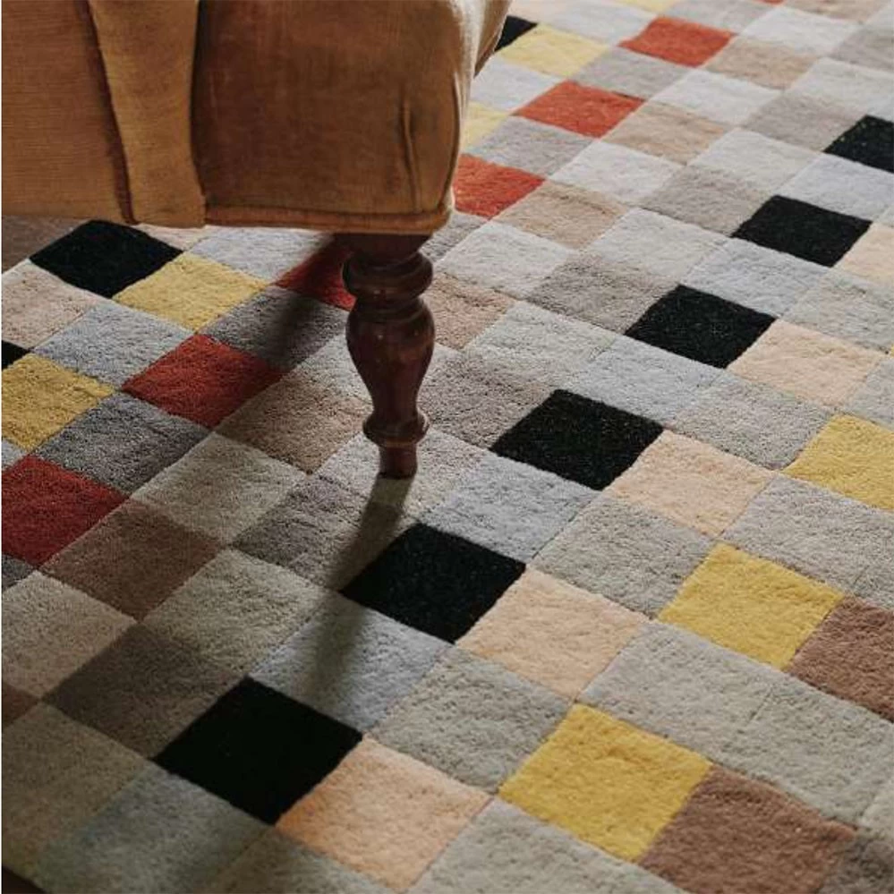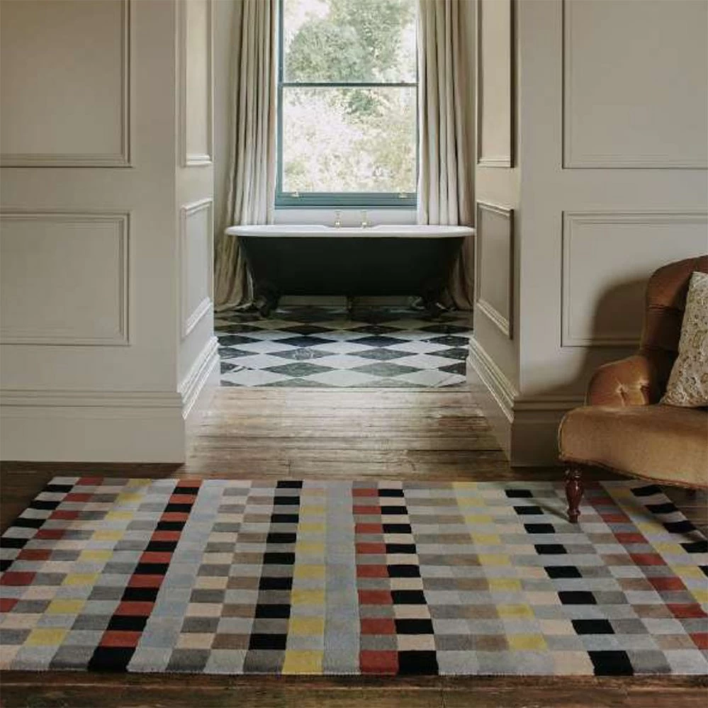 Basierend auf einem Textilentwurf von Anni Albers aus den 1920er Jahren hat die englische Manufaktur Christopher Farr den Teppich „Small Childs Room” aufgelegt. Das Motiv entstand wahrscheinlich ursprünglich als Zeichnung für ein Kinderzimmer.