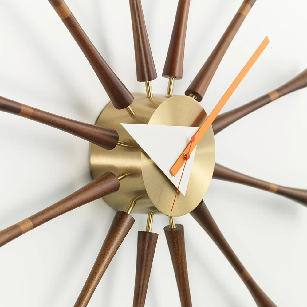 Die Spindle Clock (ursprünglich auch Spool Clock genannt) ist ein Entwurf des George Nelson Office aus dem Jahr 1957, der Korpus besteht aus Messing, die Speichen sind aus Nussbaum mit Ahorn-Einsätzen. Der eigentliche Entwurf der Wanduhr wird heute der damaligen George Nelson Mitarbeiterin Lucia De Respinis zugeschrieben.