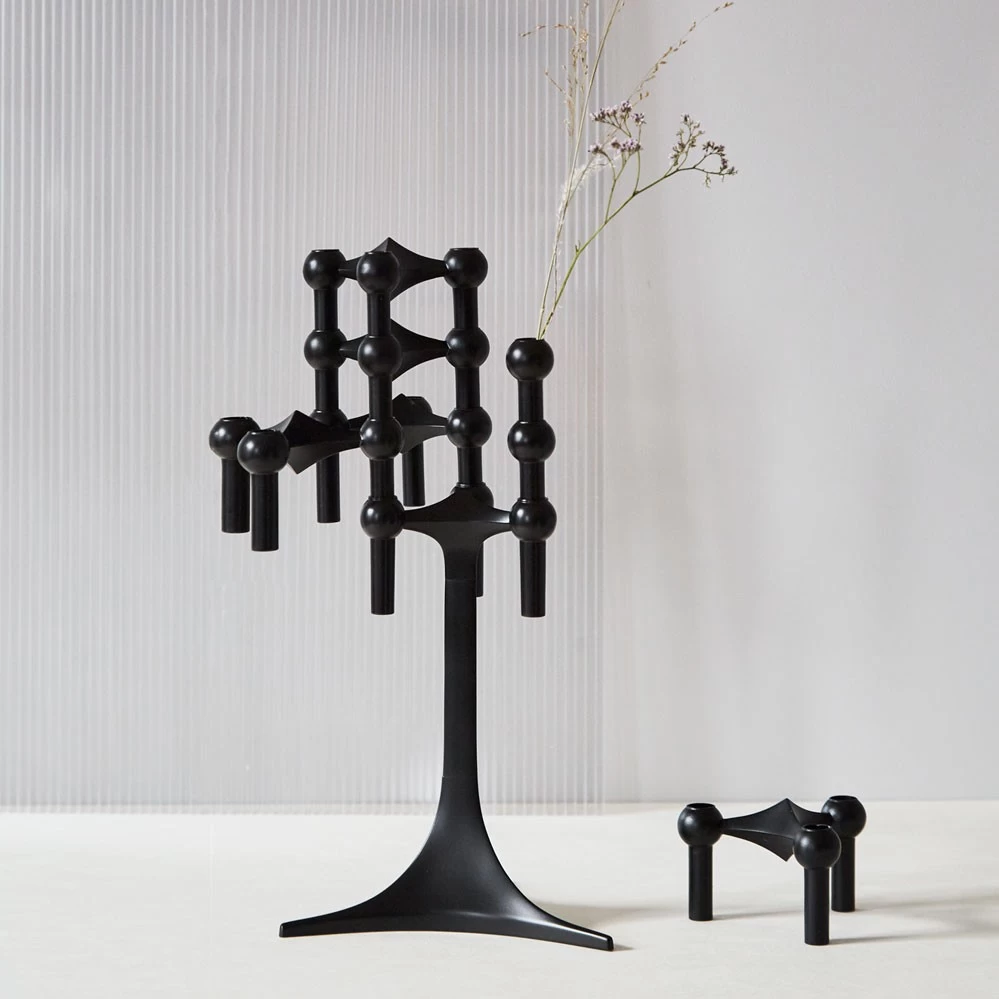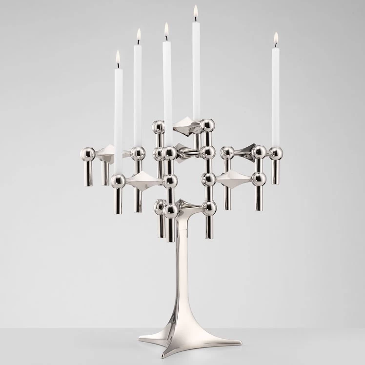 Ursprünglich für die Firma Nagel in Köln entwarf der deutsche Architekt Werner Stoff in den 1960er Jahren den Kerzenständer als ein Stecksystem. Denn das einzelne Element kann beliebig ergänzt und zusammengesteckt werden – so lassen sich ganze Skulpturen formen. Die Grundidee zu dem Entwurf kam Werner Stoff unseres Wissens durch Spuren im Schnee. Der deutsche Designklassiker wurde so bekannt, dass er immer noch allgemein als Nagel Kerzenständer bezeichnet wird. Die heutige Reedition wird von der Firma Stoff Copenhagen in Dänemark unter der Bezeichnung Stoff Kerzenständer produziert. Die Lieferung erfolgt in einer Geschenkbox, die die damalige Entwurfszeichnung zeigt.