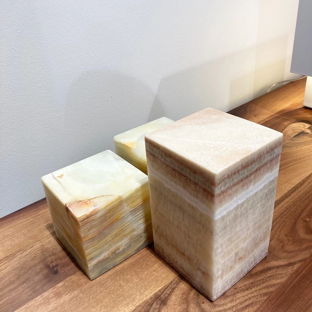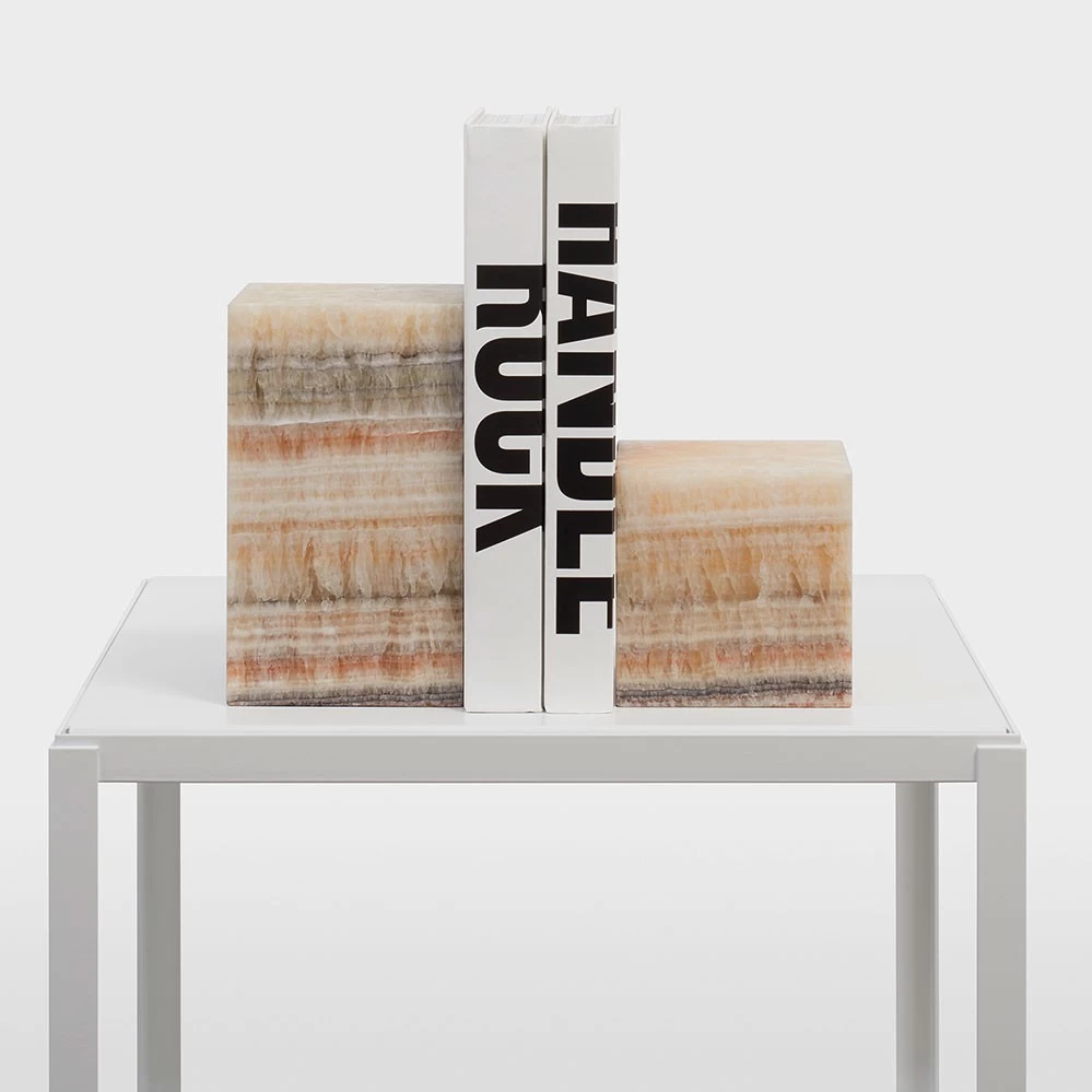 Die minimalistische 17 cmn hohe Marmorbuchstütze STOP ist im Rahmen der e15 SELECTED Premiumkollektion in einem seltenen Onyx-Marmor aus Zentralasien in zwei Varianten erhältlich. Zur Wahl steht der Onyx-Marmor Fantastico mit seinem Farbverlauf oder der honig- bis grünfarbige Onyx-Marmor Honey, wir können kaum sagen, welcher Marmor schöner ist. Da der kristalline Marmorstein leider nur beschränkt zur Verfügung steht, empfehlen wir bei Interesse, möglichst zeitnah zu bestellen. Der Preis gilt pro Buchstütze.
