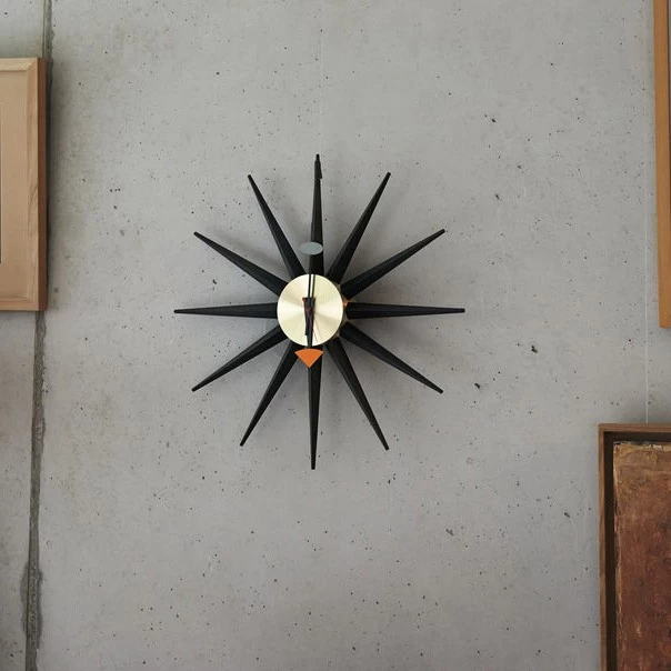 2013 legte Vitra einige George Nelson Wall Clocks als Messing-Variante mit einer eleganten, schwarzen Farbgebung auf. Dazu zählte die Sunflower Clock, die Petal Clock und die Sunburst Clock.