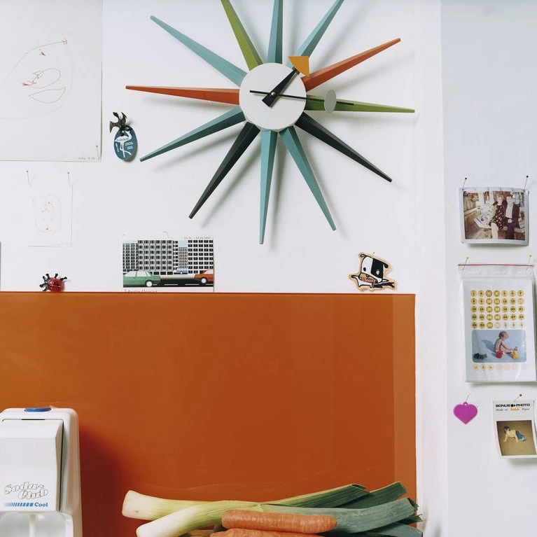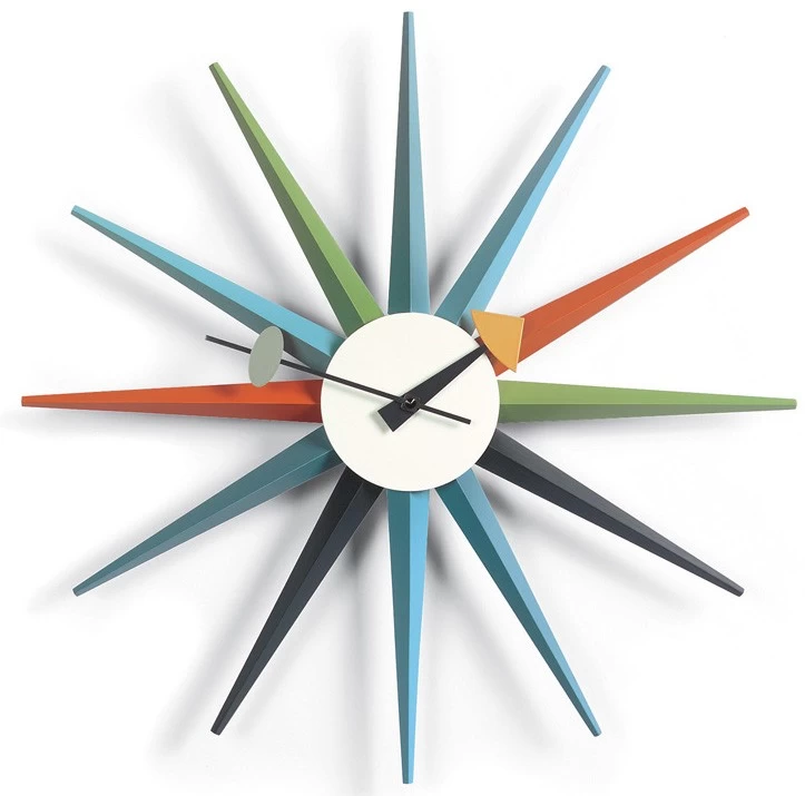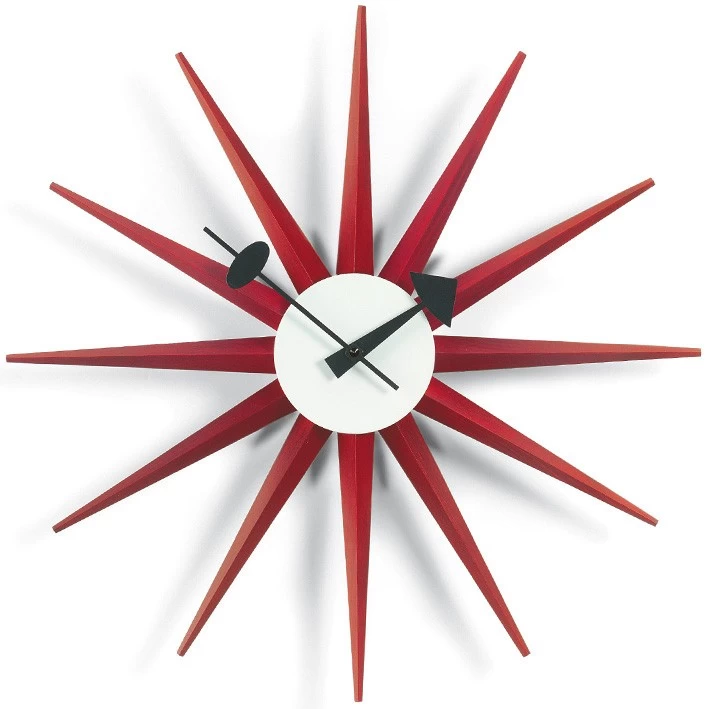 Die Sunburst Clock ist ein Entwurf des George Nelson Office aus den Jahren 1952 bis 1953 und wurde ab dem Jahr 1999 von Vitra bzw. dem Vitra Design Museum in verschiedenen Farbvarianten neu aufgelegt. Diese Farben basieren dabei teilweise auf historischen Versionen, wie sie schon in den 1950er Jahren von dem damaligen Hersteller Howard Miller in den USA verwendet wurden.