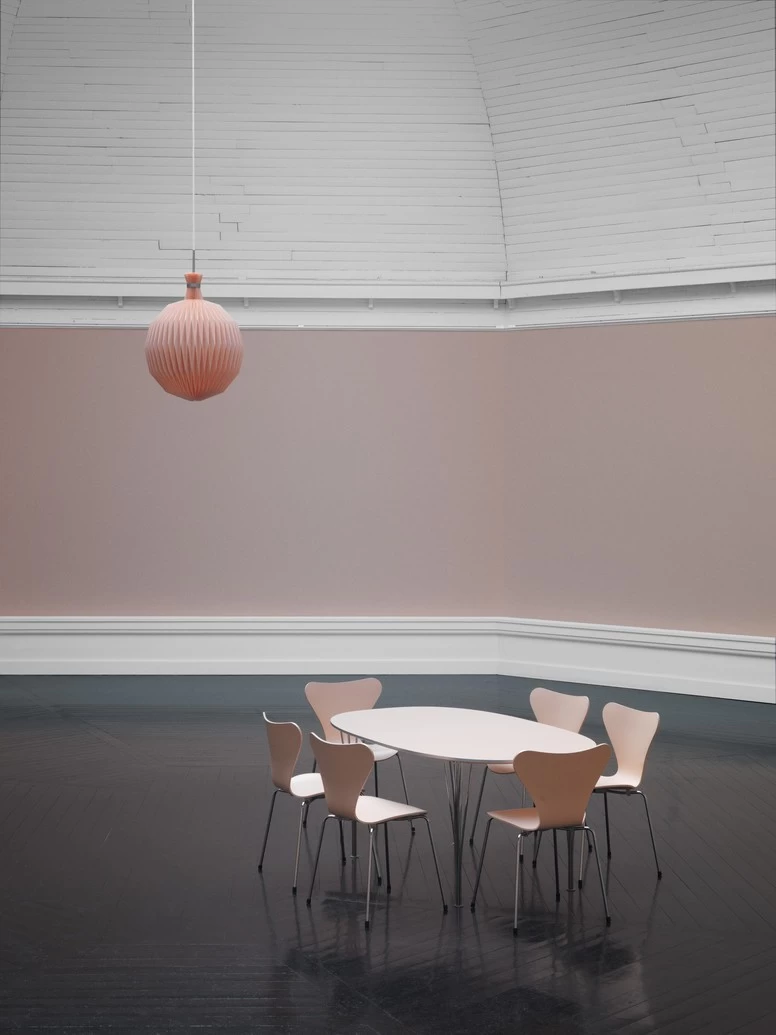 Der ovale Super-Ellipse Tisch zeichnet sich durch drei besondere Designmerkmale aus: Die superelliptische Tischplatte basiert auf dem Konzept des schwedischen Philosophen, Poeten und Mathematikers Piet Hein. Für den verkehrsreichen Sergels-Platz in Stockholm schuf er eine neue ovale Formgebung, die ab 1968 von Fritz Hansen dann zur Produktion der Tische verwendet wurde. Das zweite Designmerkmal ist die von Bruno Mathsson entwickelte Spannbein-Technologie. Hierbei werden die Spannbeine einfach unter der Tischplatte eingespannt – so kann der Tisch dank der stabilen Konstruktion schnell auf- und abgebaut werden. Ein drittes Designmerkmal ist die elegante, umlaufende Aluminiumkante. Die Tischserie ist noch in zahlreichen weiteren Größen und Varianten erhältlich (z. B. Konferenztische oder Ausziehtische bis 300 cm Länge), die wir Ihnen gerne auf Anfrage anbieten.