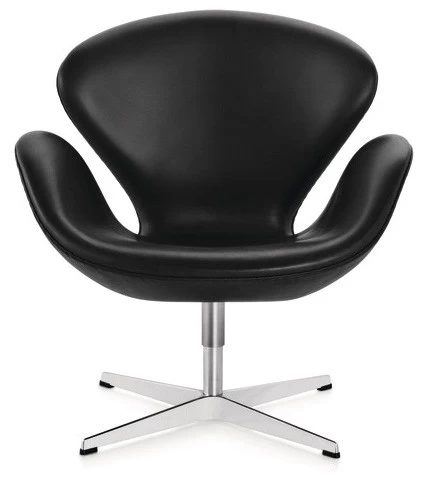 Der organisch geformte Sessel Swan Chair von Arne Jacobsen entstand ursprünglich für die Inneneinrichtung des Hotel Royals in Kopenhagen. Das zwischen 1956 und 1961 geplante Hotel Royal für die dänische Fluggesellschaft SAS zählt zu Jacobsens Hauptwerk, denn Jacobsen entwarf nicht nur das Gebäude, sondern auch die gesamte Inneneinrichtung als ein Gesamtkunstwerk. Dazu zählten die beiden organischen Sessel Ei und Schwan – heute die dänischen Designikonen überhaupt. Erhältlich ist die Lederausführung des Swan Chairs bei Markanto wahlweise in folgenden Fritz Hansen Lederarten (Ledermuster senden wir gerne zu):